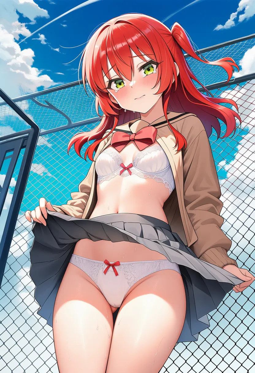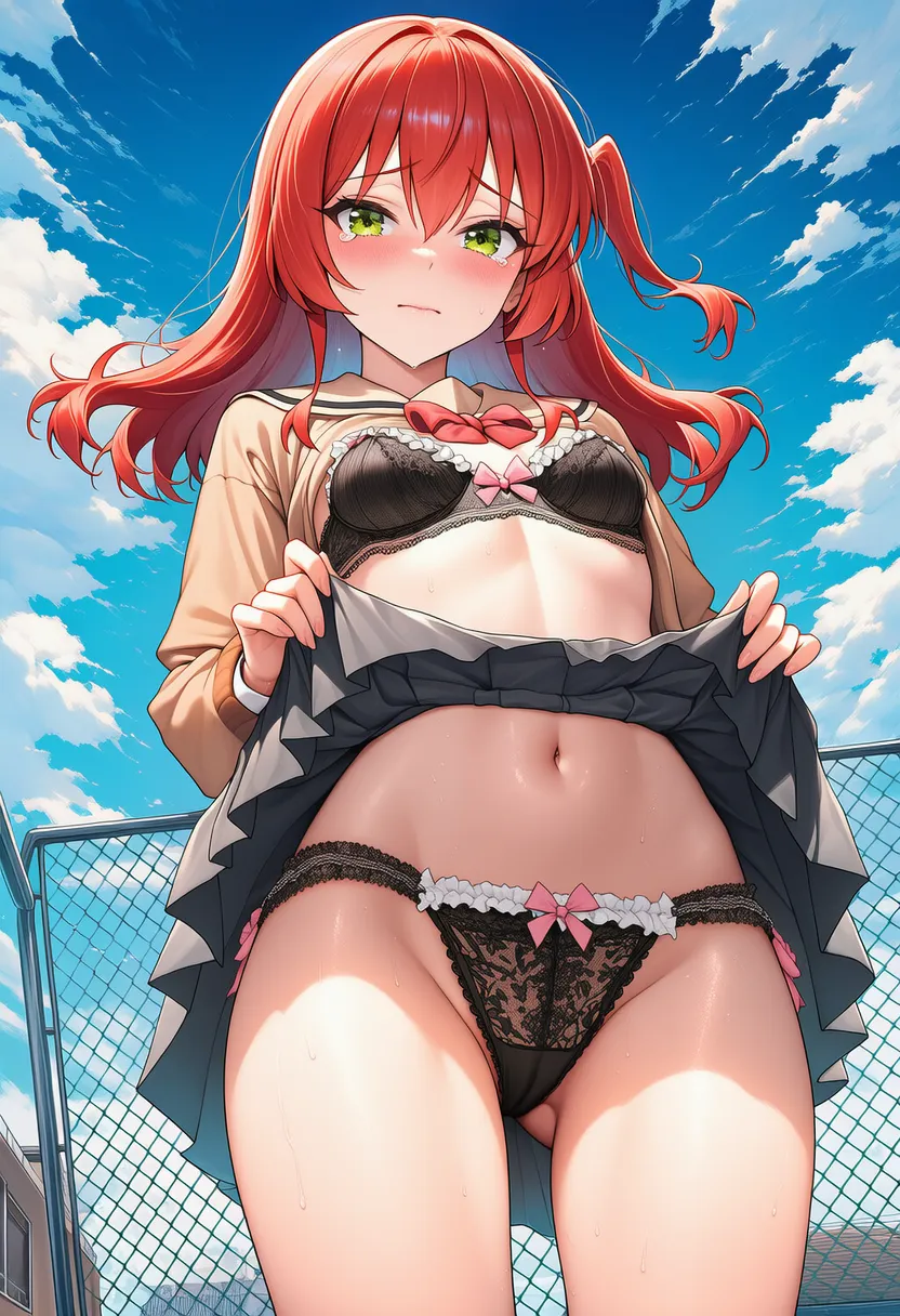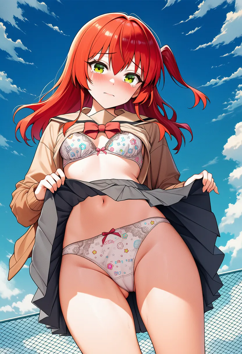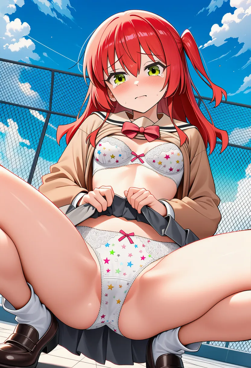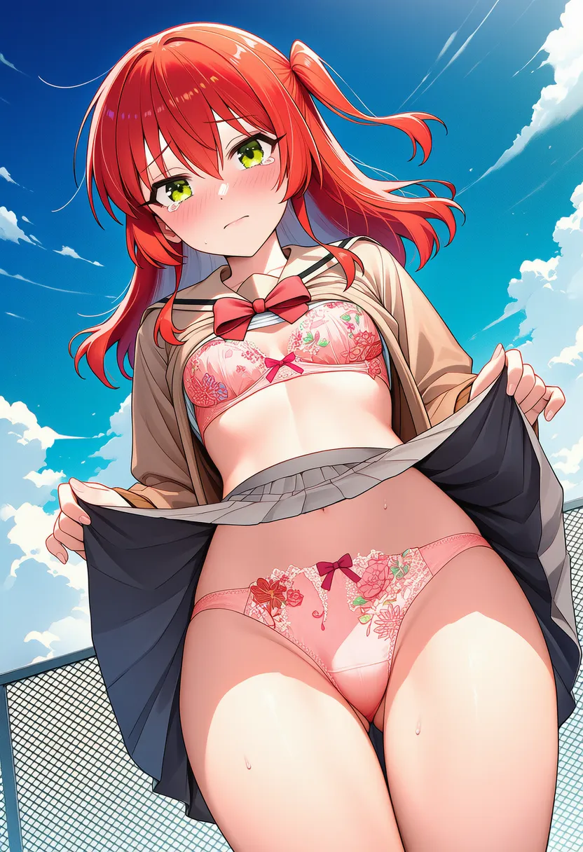 『ぼっち・ざ・ろっく!』の喜多郁代(きた いくよ)の下着露出イラストです。pixivでは「下着チェック」シリーズとして投稿している内容です。クリック/タップで大きな画像を表示できます。