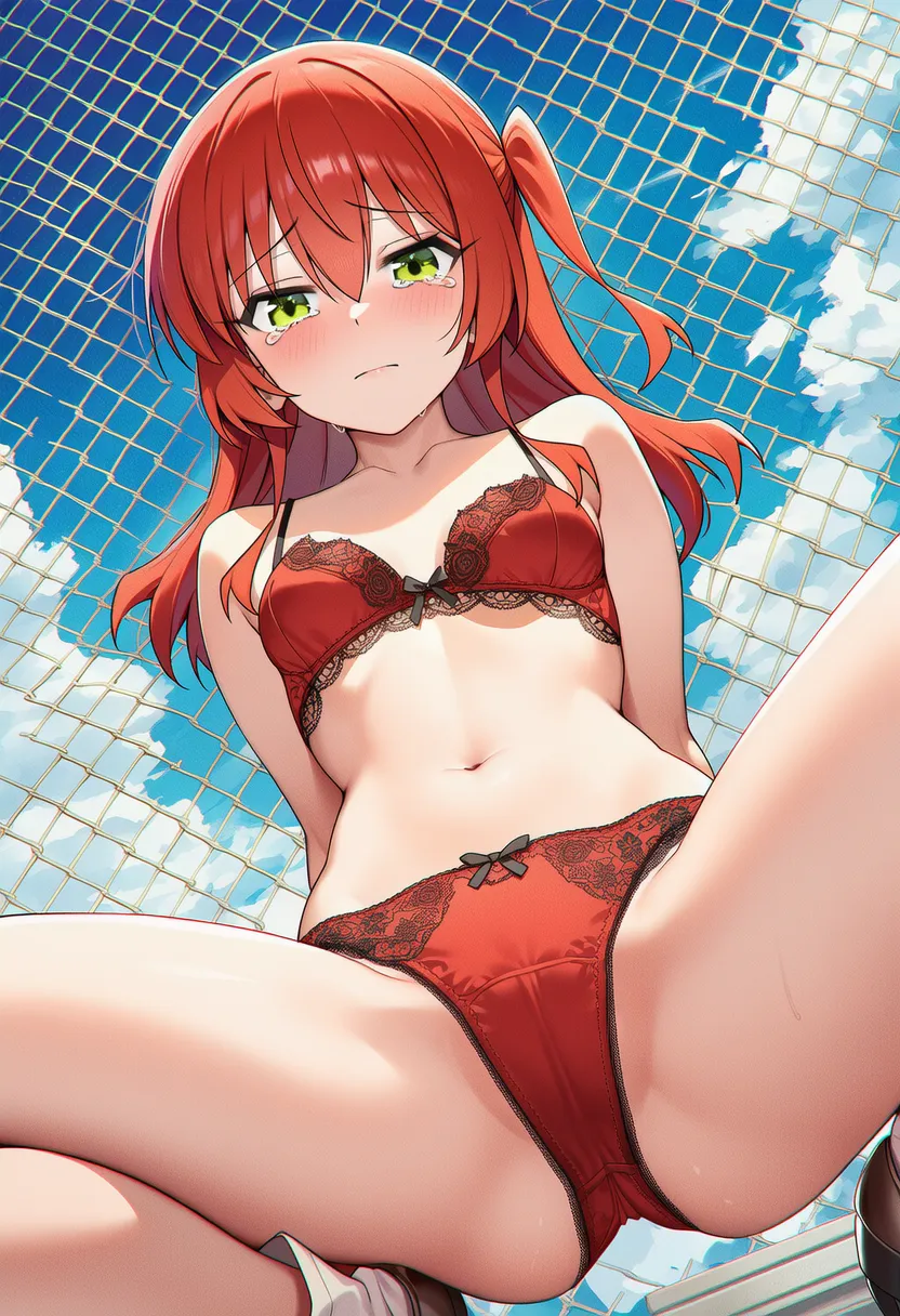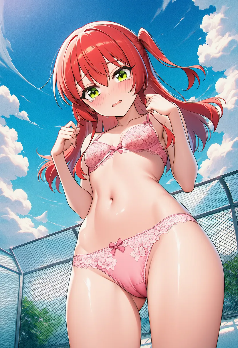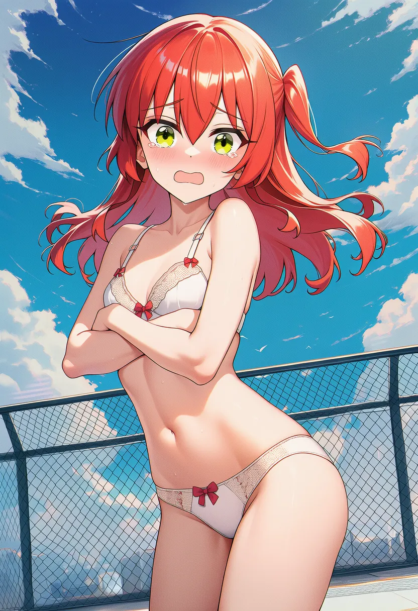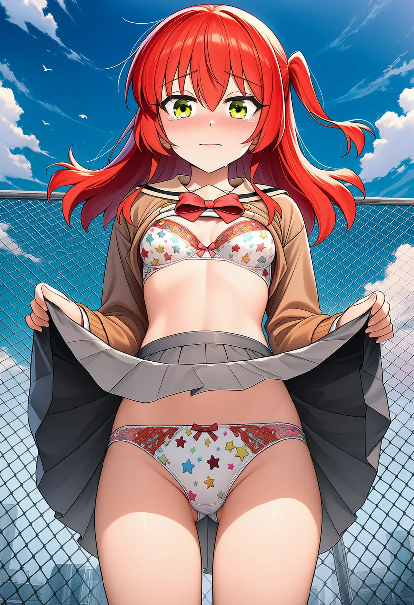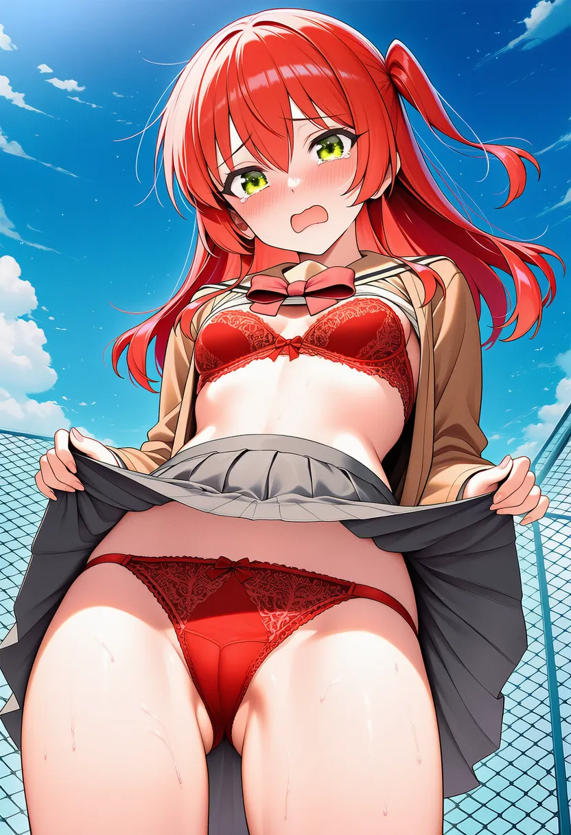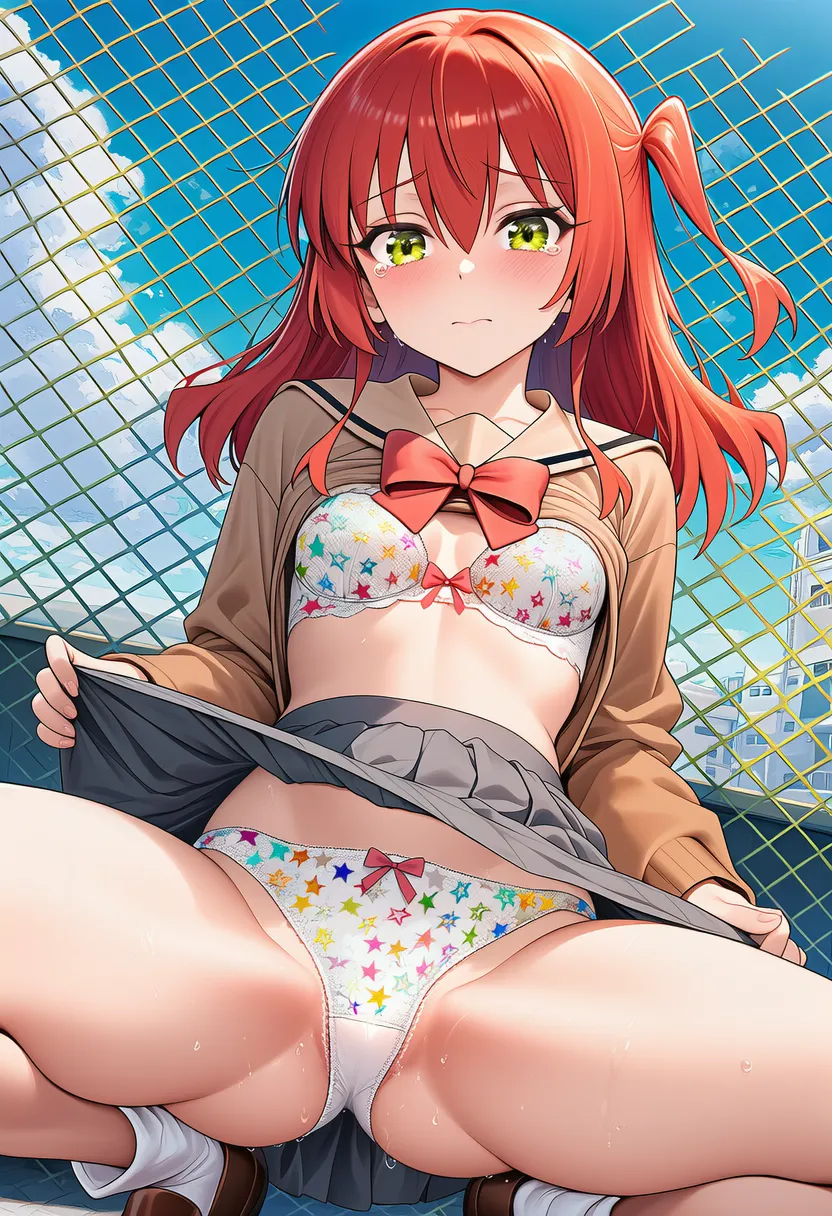 『ぼっち・ざ・ろっく!』の喜多郁代(きた いくよ)の下着露出イラストです。pixivでは「下着チェック」シリーズとして投稿している内容です。クリック/タップで大きな画像を表示できます。