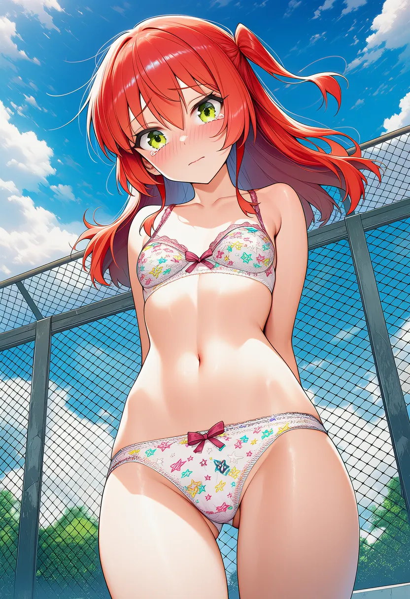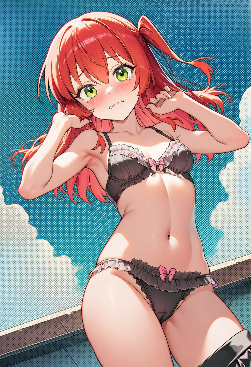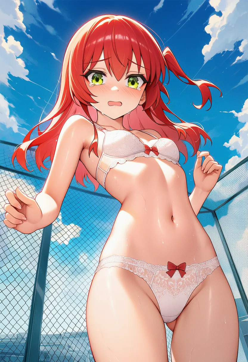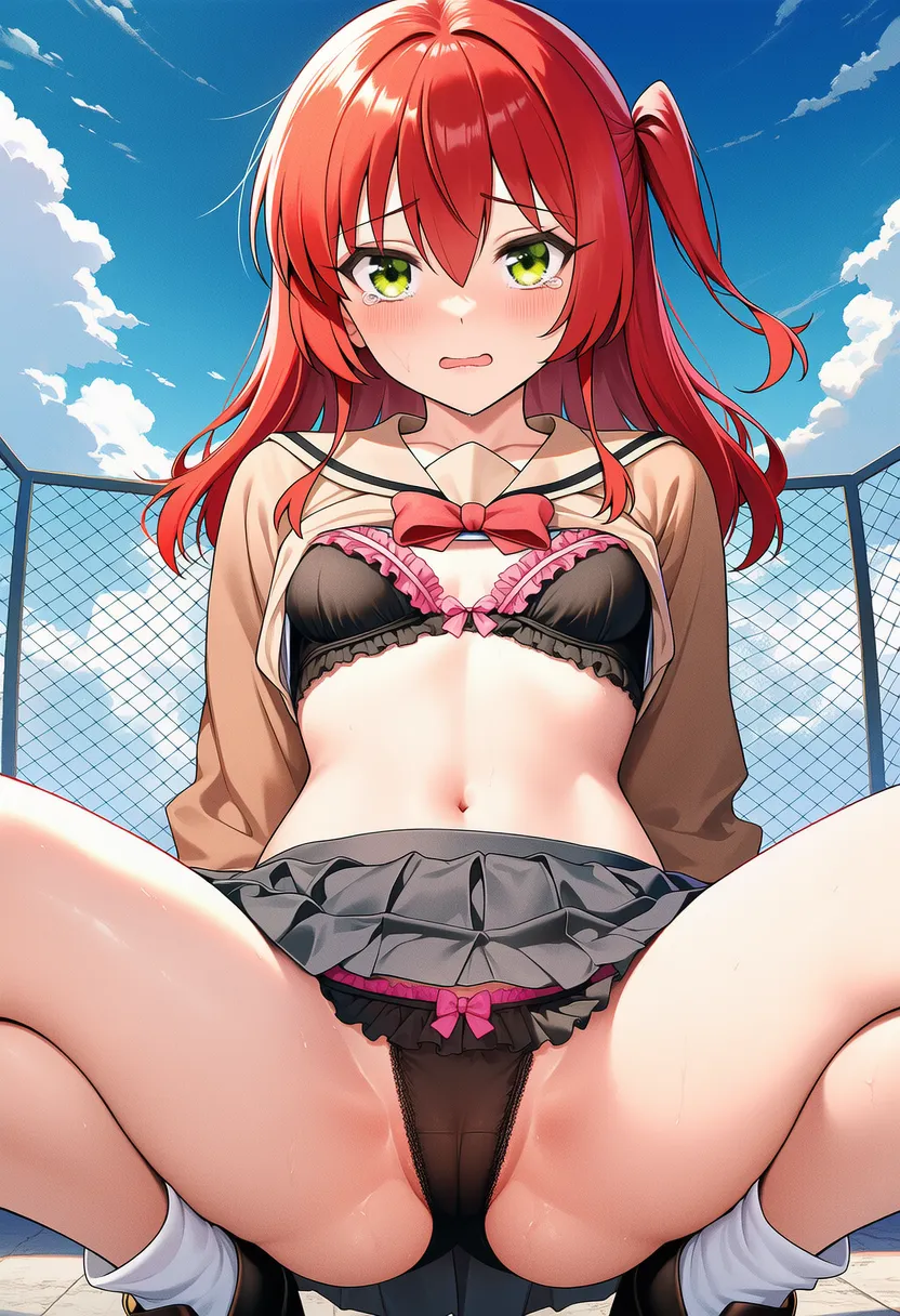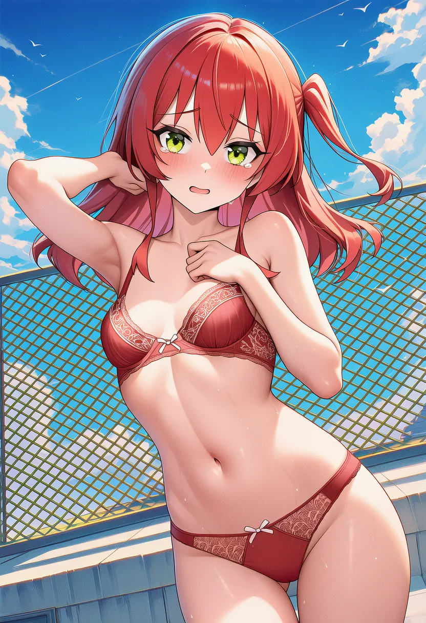 『ぼっち・ざ・ろっく!』の喜多郁代(きた いくよ)の下着露出イラストです。pixivでは「下着チェック」シリーズとして投稿している内容です。クリック/タップで大きな画像を表示できます。
