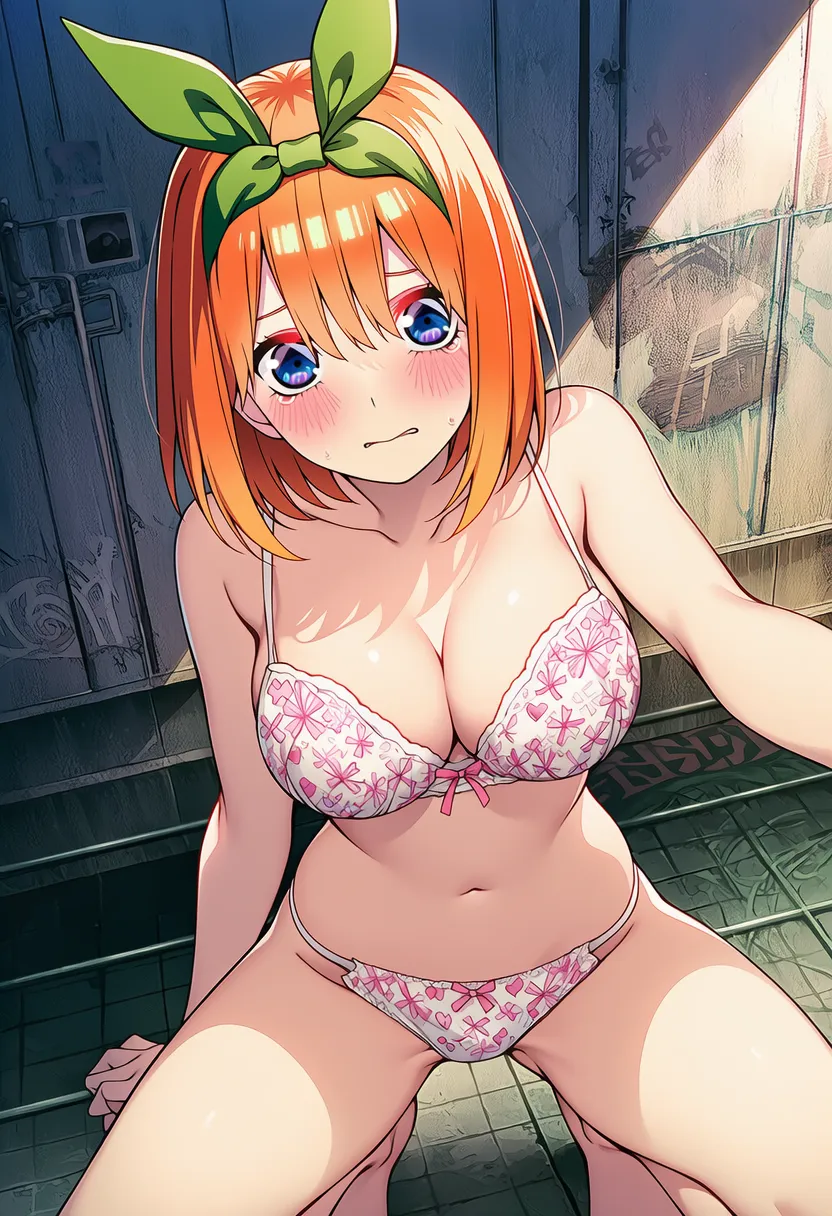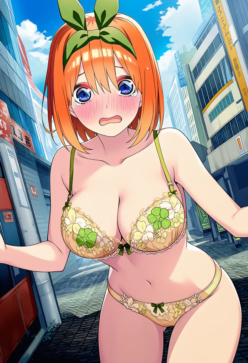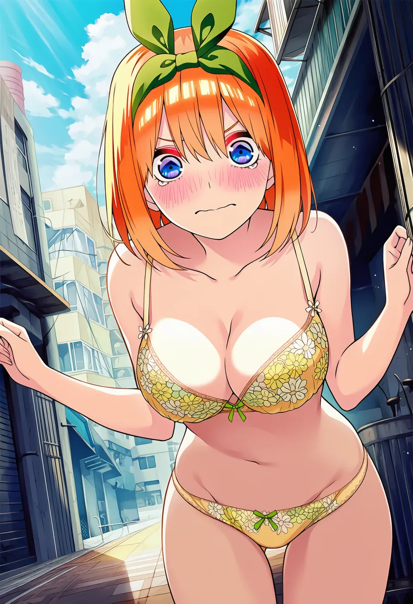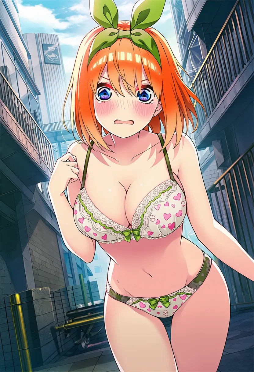 『五等分の花嫁』の中野四葉(なかの よつば)の下着露出イラストです。pixivでは「下着チェック」シリーズとして投稿している内容です。クリック/タップで大きな画像を表示できます。