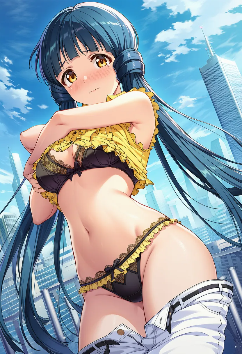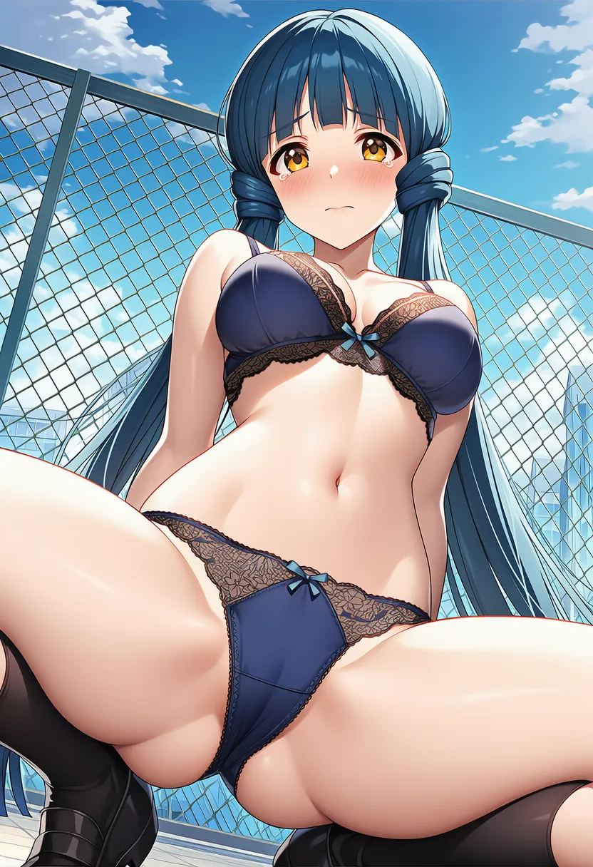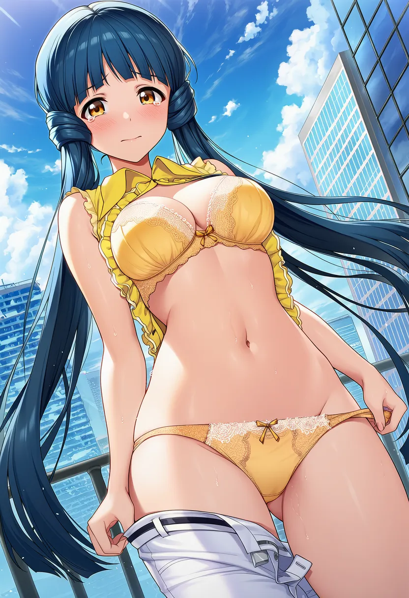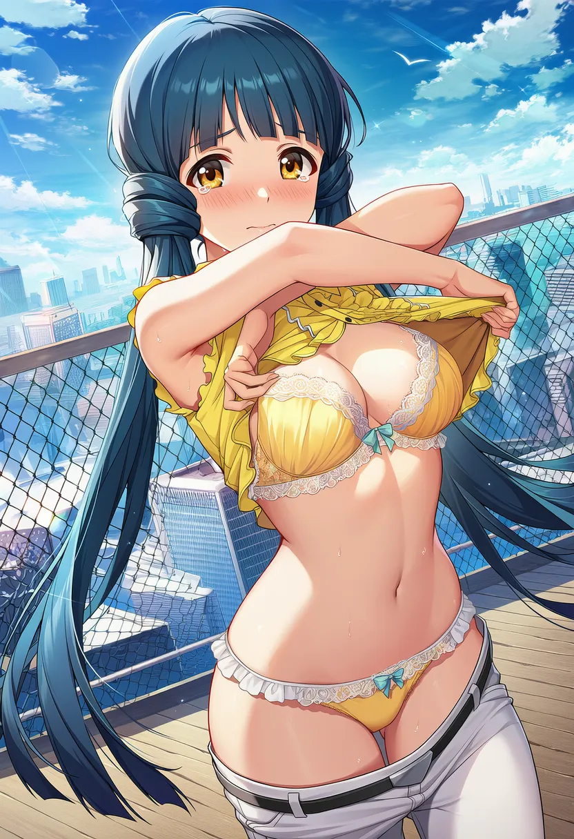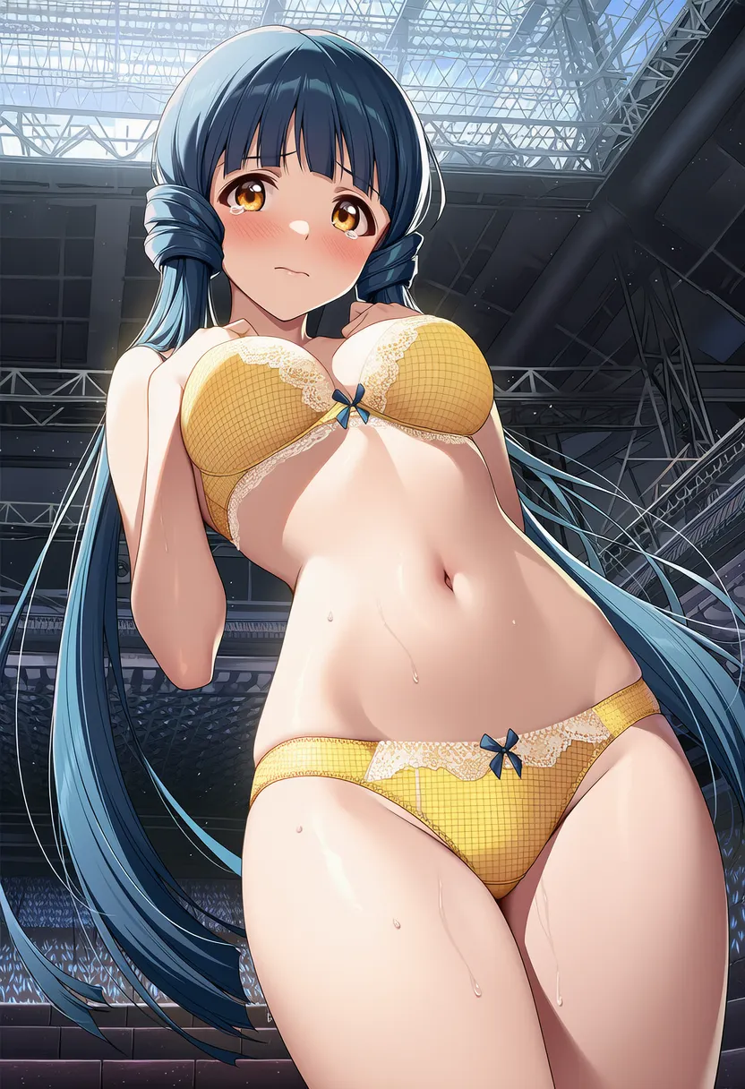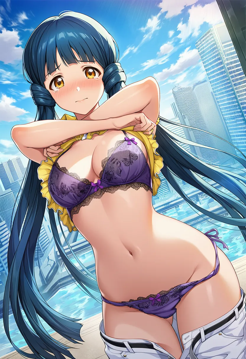 『アイドルマスター ミリオンライブ!』の北上麗花(きたかみ れいか)の下着露出イラストです。pixivでは「下着チェック」シリーズとして投稿している内容です。クリック/タップで大きな画像を表示できます。