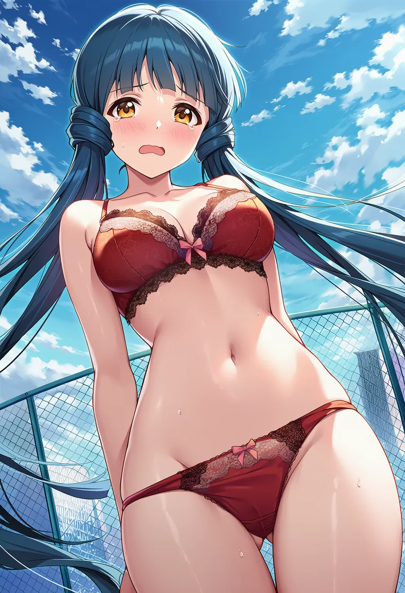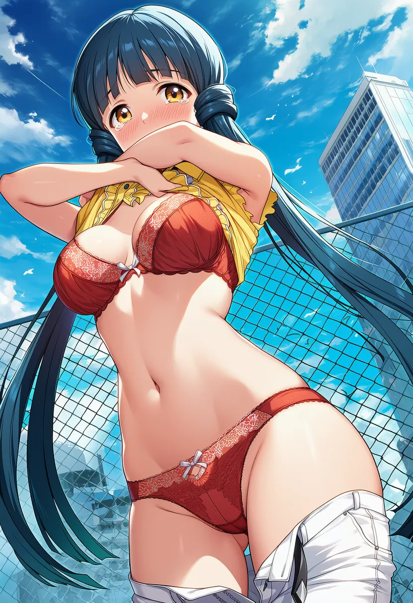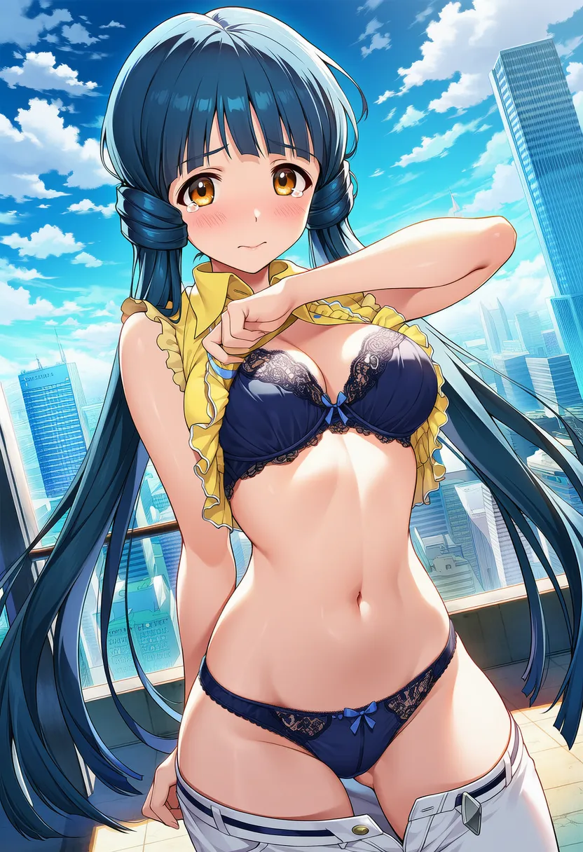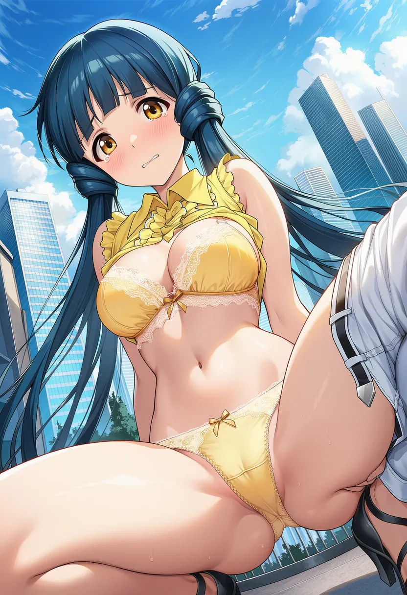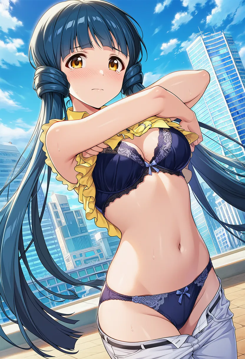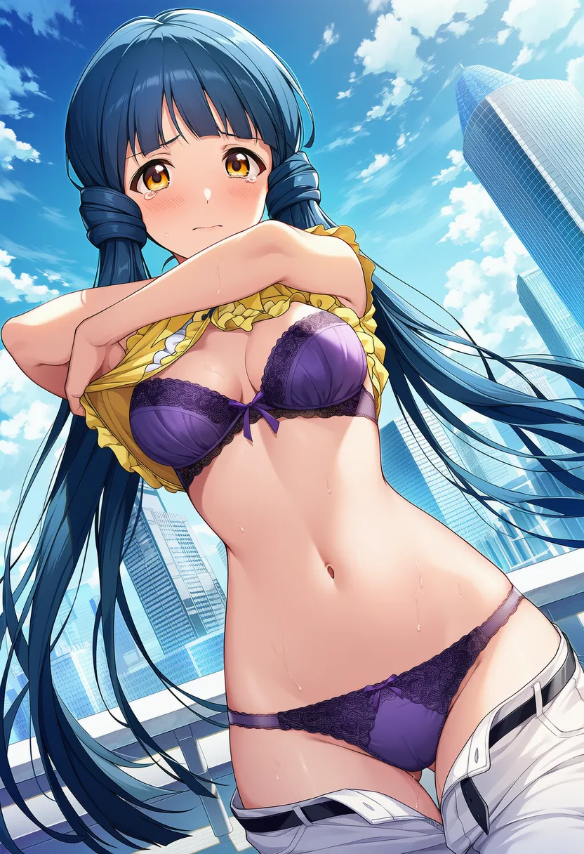『アイドルマスター ミリオンライブ!』の北上麗花(きたかみ れいか)の下着露出イラストです。pixivでは「下着チェック」シリーズとして投稿している内容です。クリック/タップで大きな画像を表示できます。