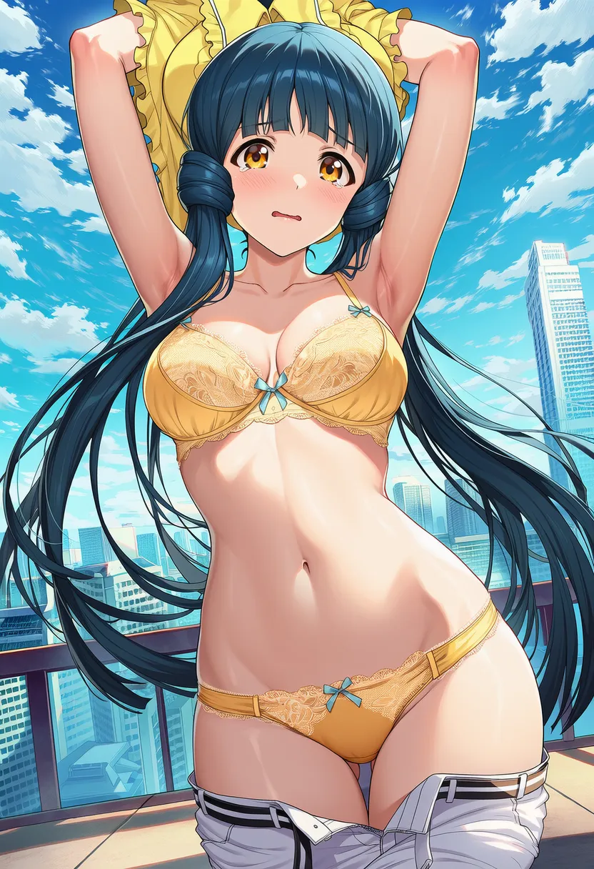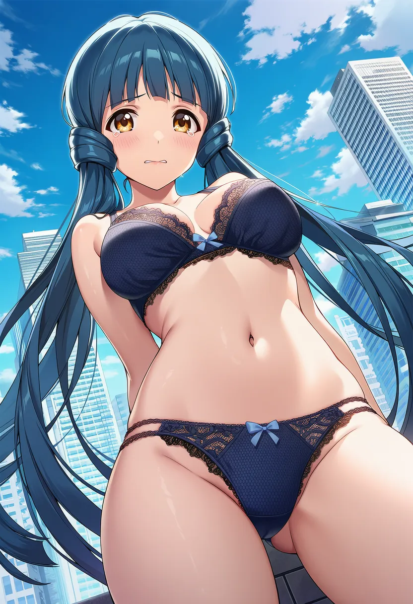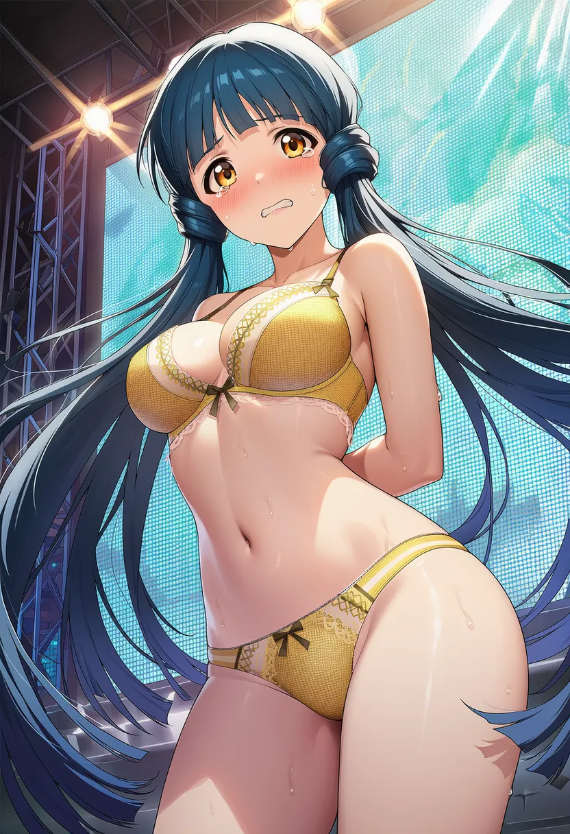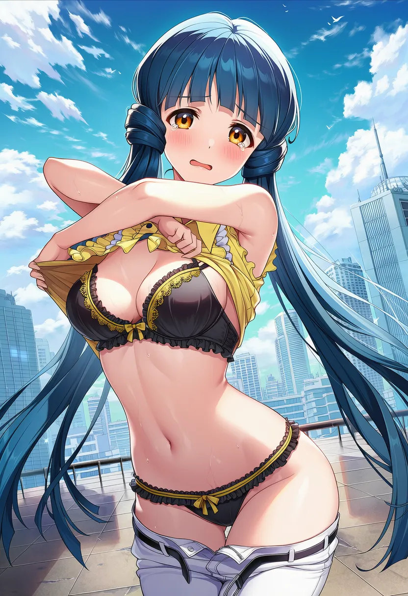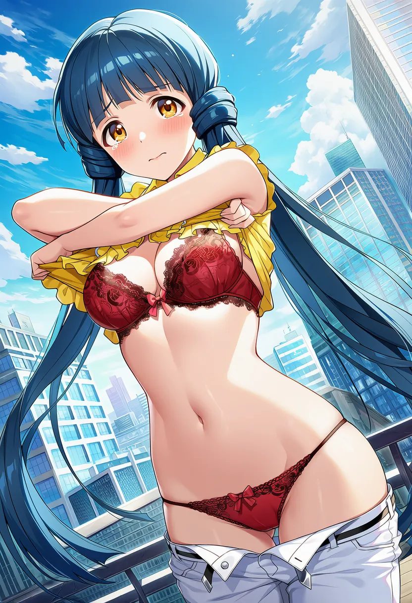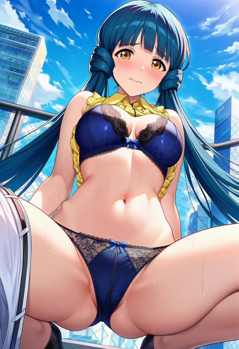 『アイドルマスター ミリオンライブ!』の北上麗花(きたかみ れいか)の下着露出イラストです。pixivでは「下着チェック」シリーズとして投稿している内容です。クリック/タップで大きな画像を表示できます。