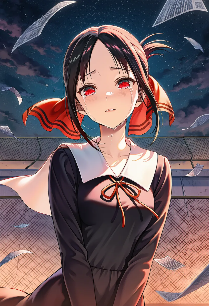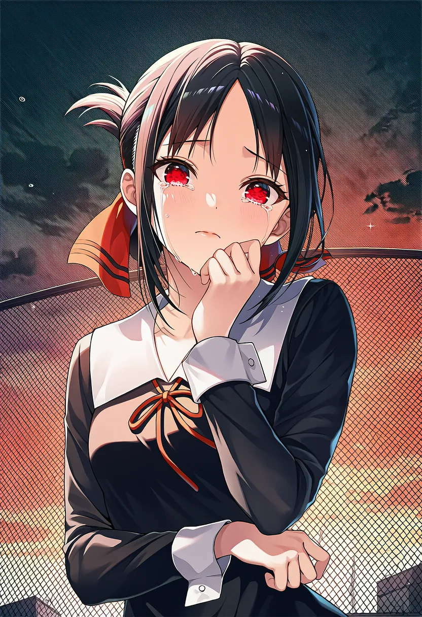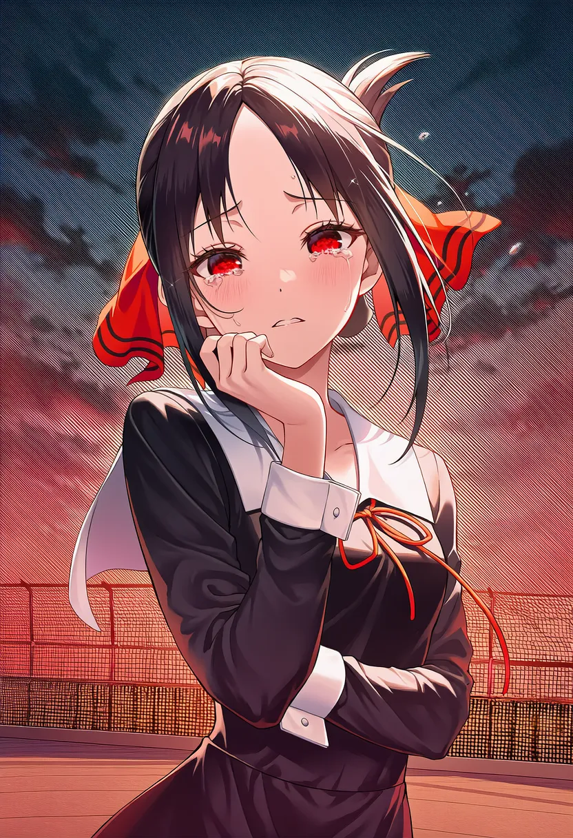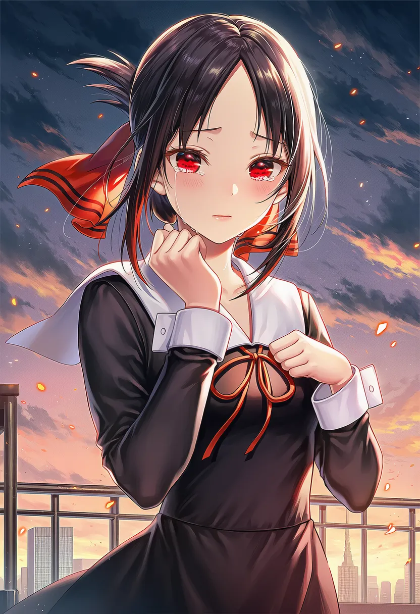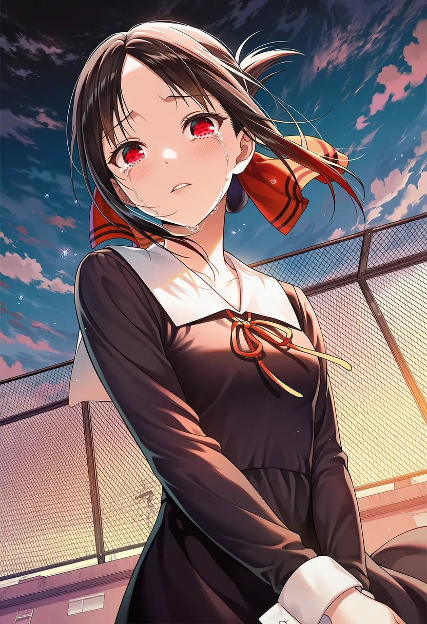 四宮かぐや 制服/冬服/屋上/バストアップ/涙
