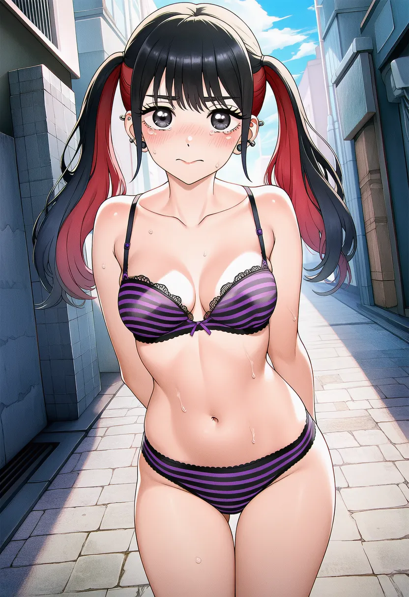 屋外で下着を露出させられる菅谷乃羽。