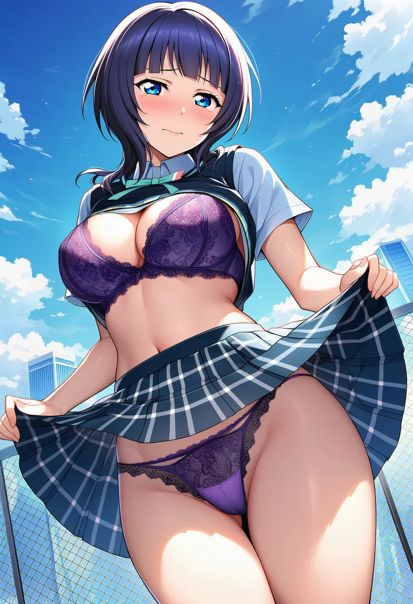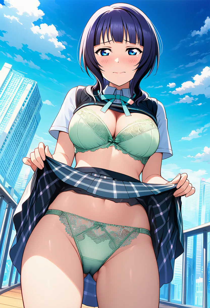 『ラブライブ!虹ヶ咲学園スクールアイドル同好会』の朝香果林(あさか かりん)の下着露出イラストです。pixivでは「下着チェック」シリーズとして投稿している内容です。クリック/タップで大きな画像を表示できます。