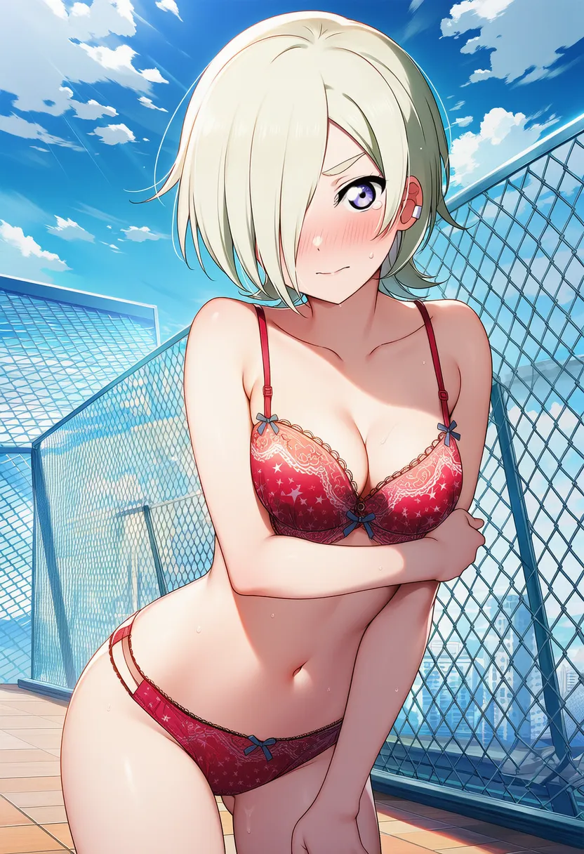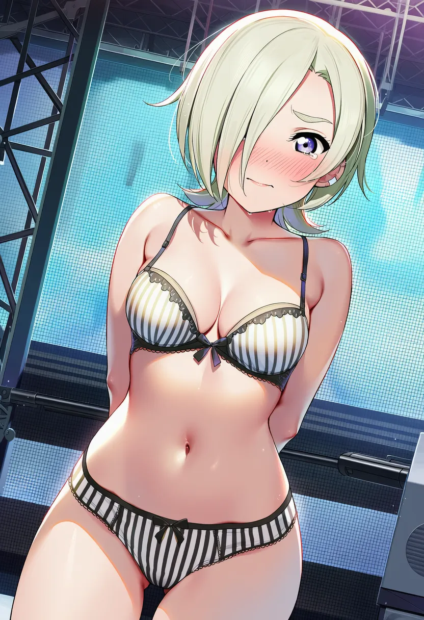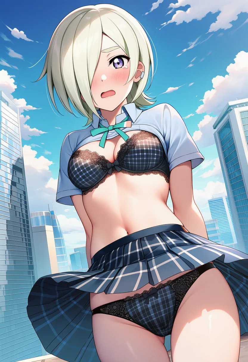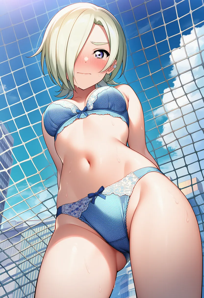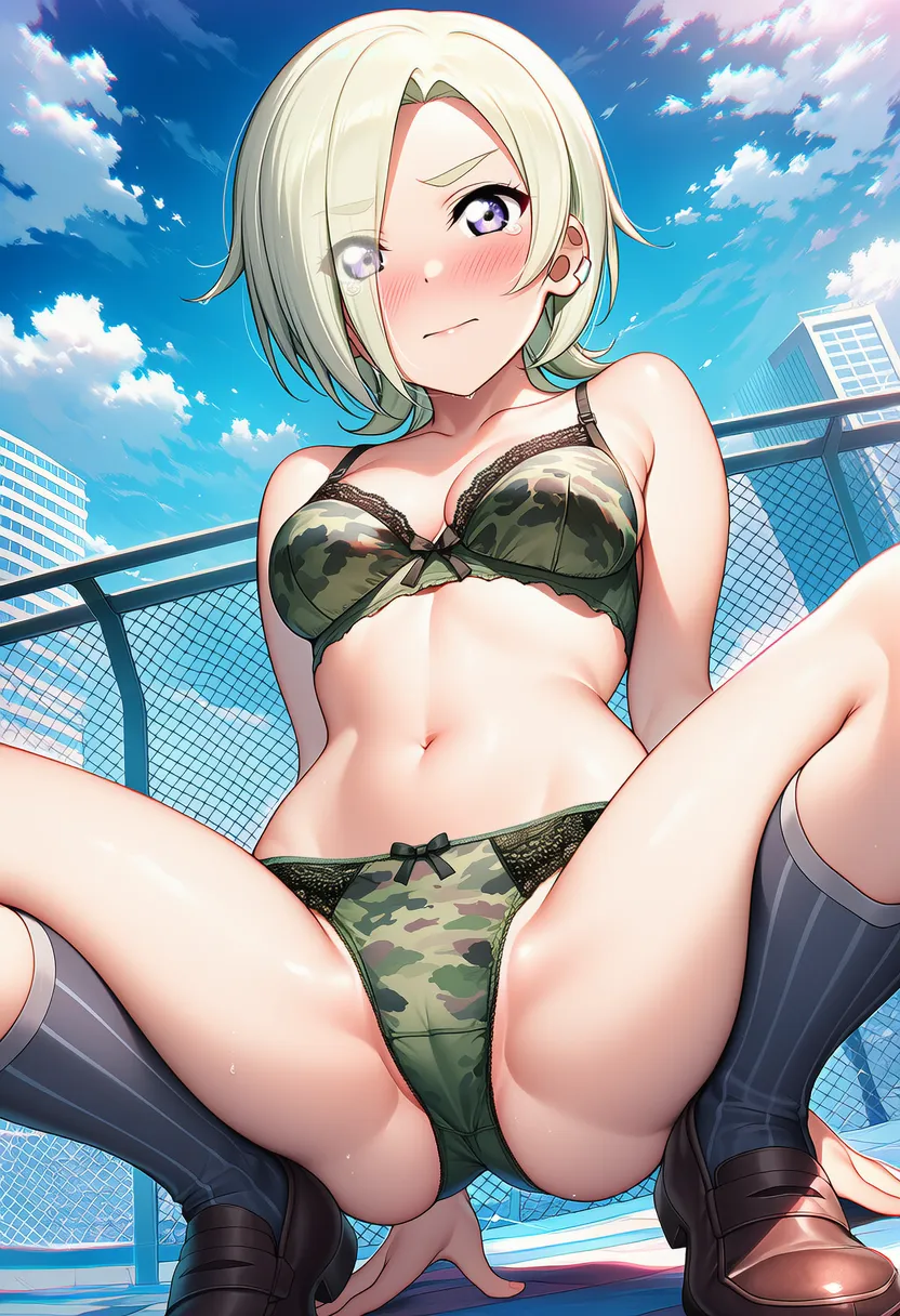 『ラブライブ!虹ヶ咲学園スクールアイドル同好会』のミア・テイラー(ショウ・ランジュ)の下着露出イラストです。pixivでは「下着チェック」シリーズとして投稿している内容です。クリック/タップで大きな画像を表示できます。