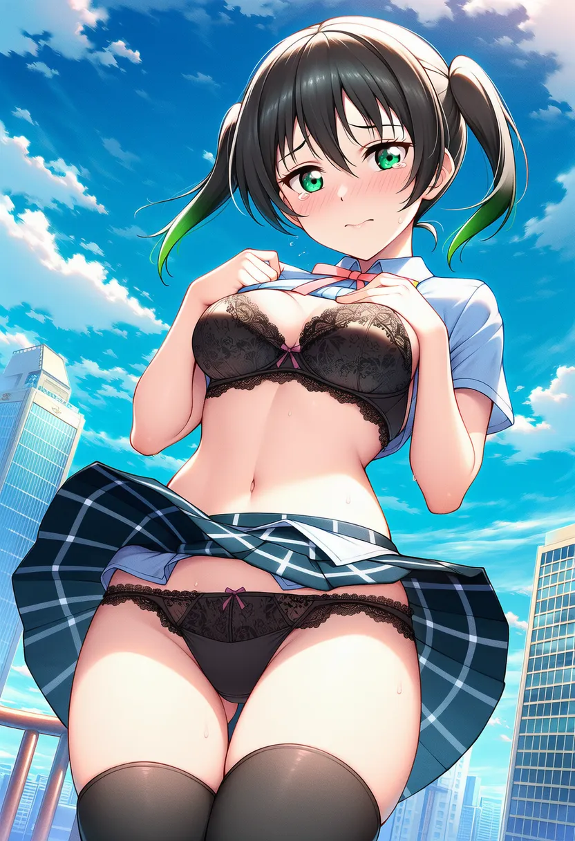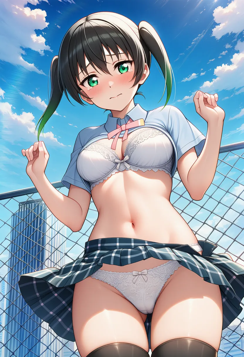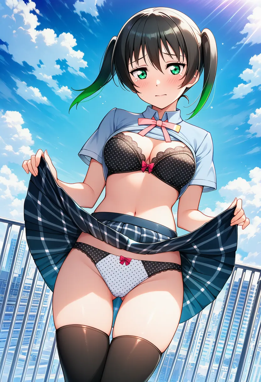 『ラブライブ!虹ヶ咲学園スクールアイドル同好会』の高咲侑(たかさき ゆう)の下着露出イラストです。pixivでは「下着チェック」シリーズとして投稿している内容です。クリック/タップで大きな画像を表示できます。