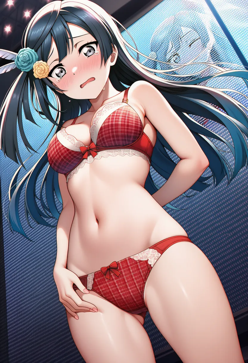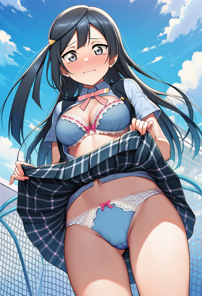 『ラブライブ!虹ヶ咲学園スクールアイドル同好会』の優木せつ菜(ゆうき せつな)の下着露出イラストです。pixivでは「下着チェック」シリーズとして投稿している内容です。クリック/タップで大きな画像を表示できます。