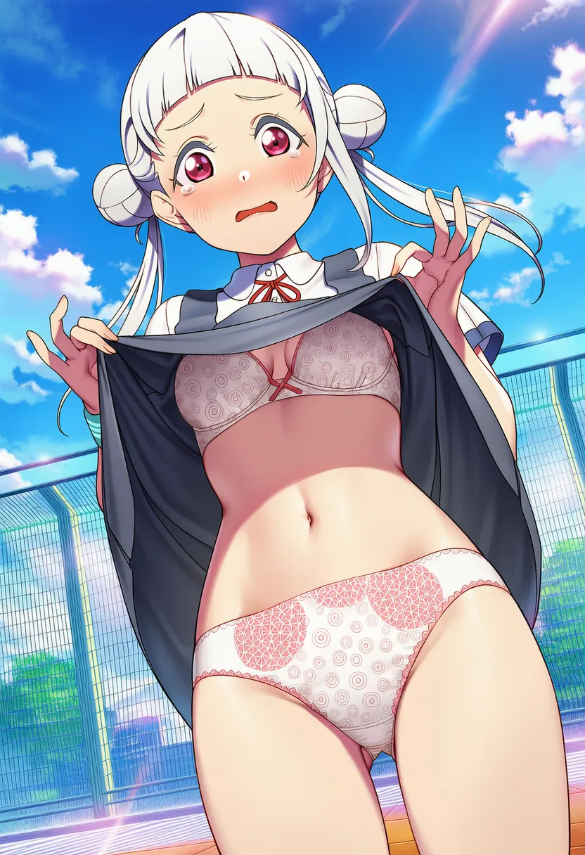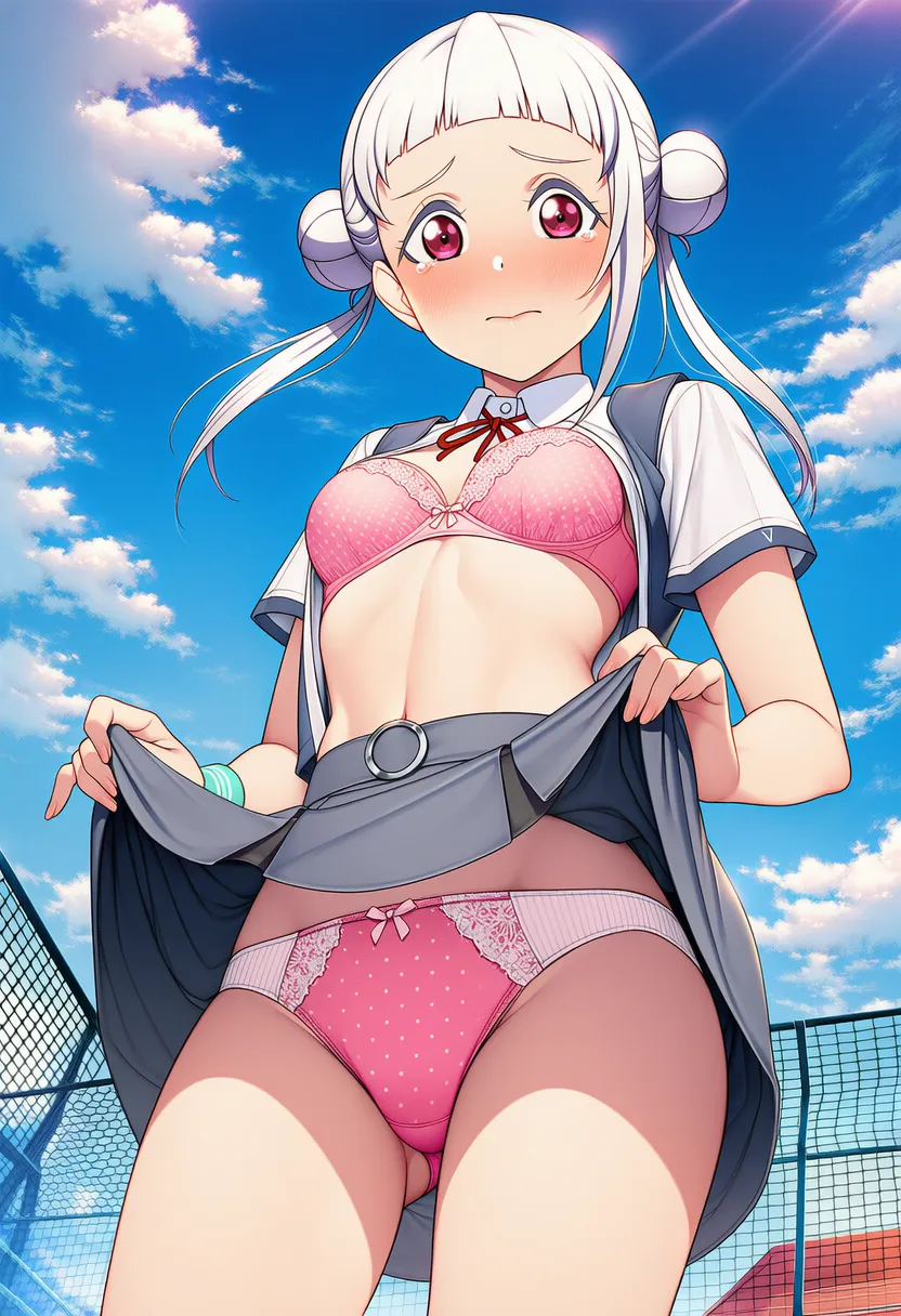 『ラブライブ!スーパースター!!』の嵐千砂都(あらし ちさと)の下着露出イラストです。pixivでは「下着チェック」シリーズとして投稿している内容です。クリック/タップで大きな画像を表示できます。