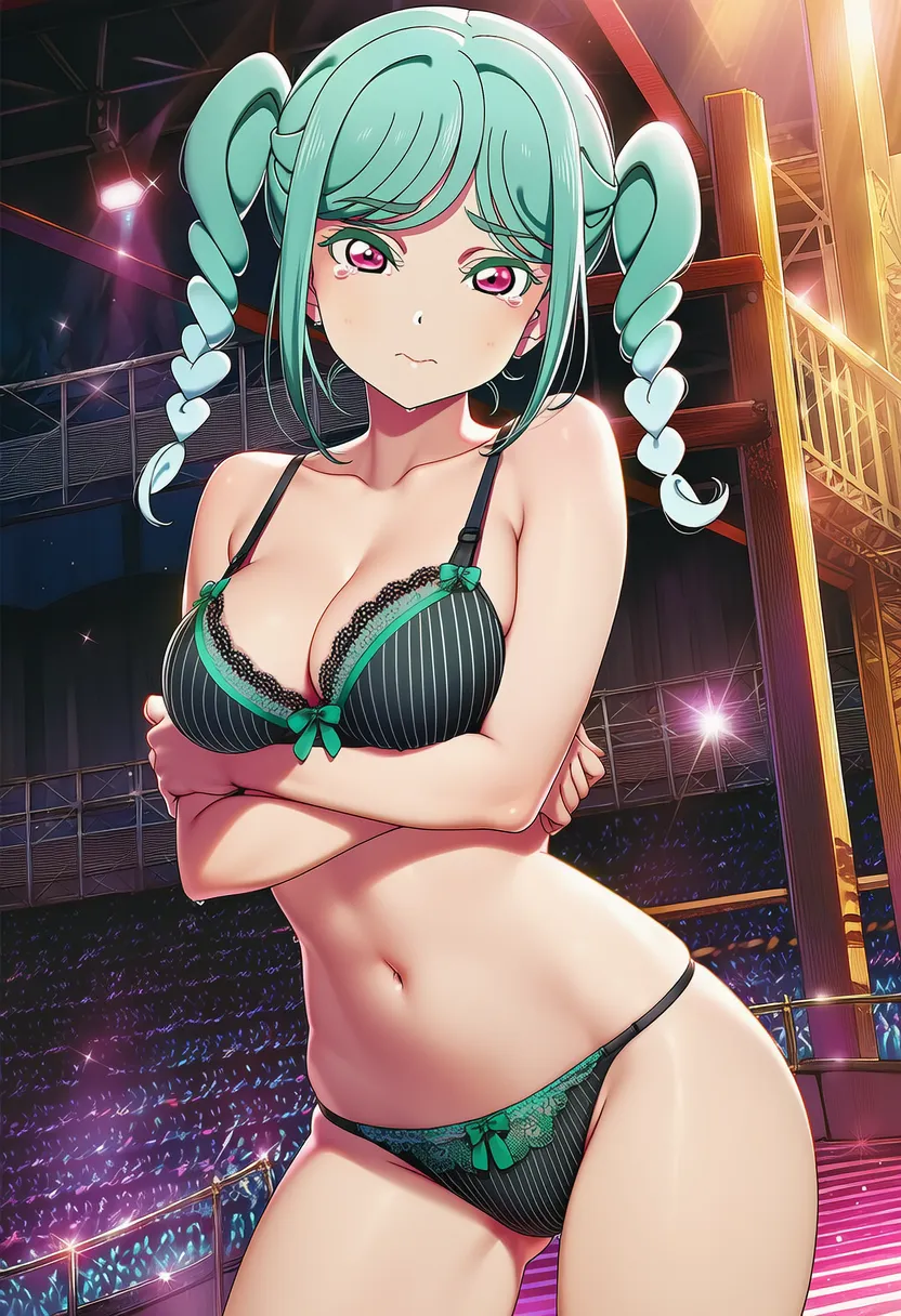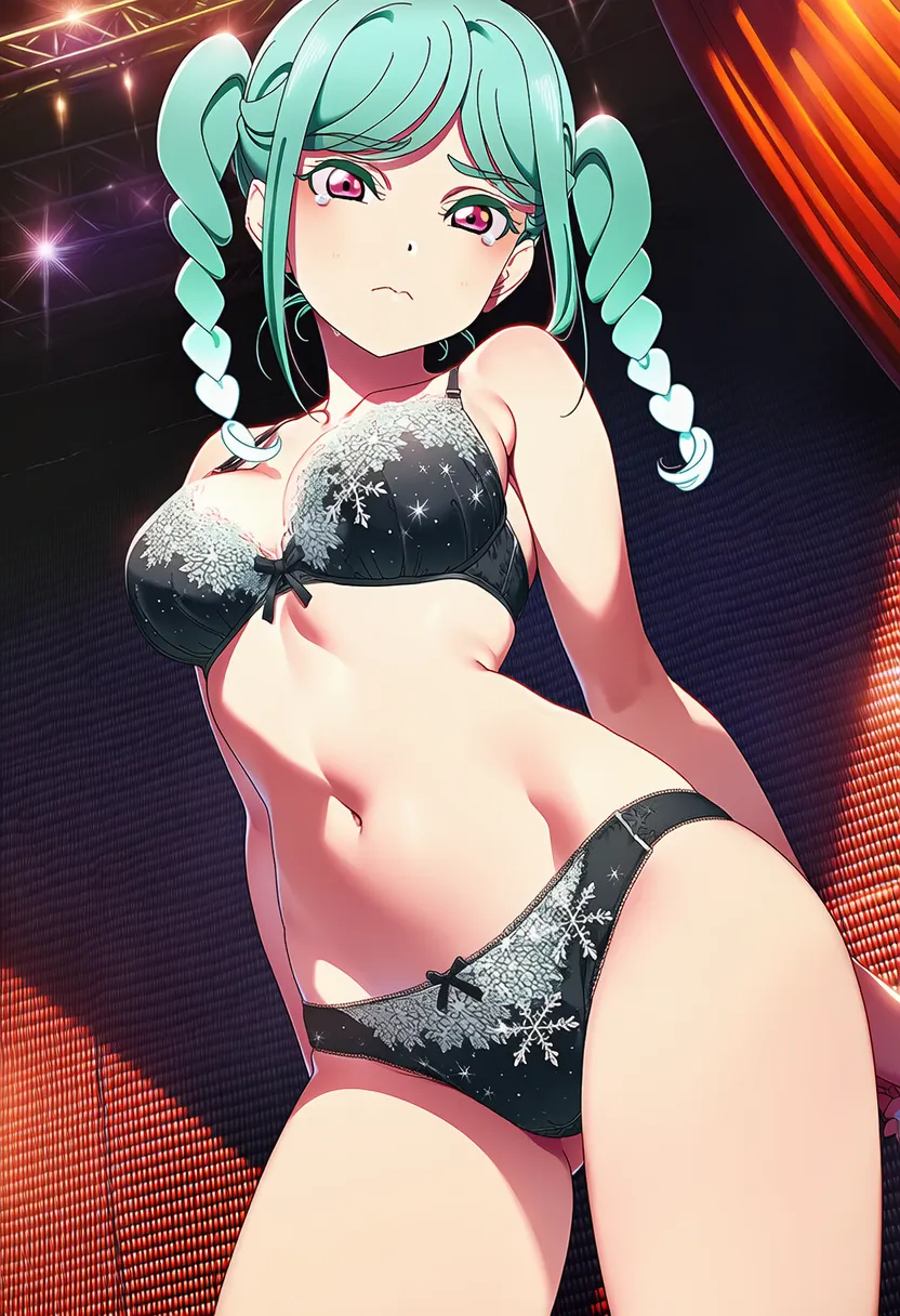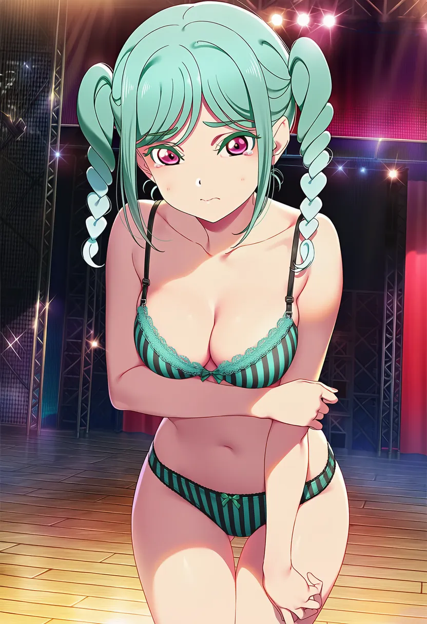 ステージで下着を露出させられる鬼塚冬毬。