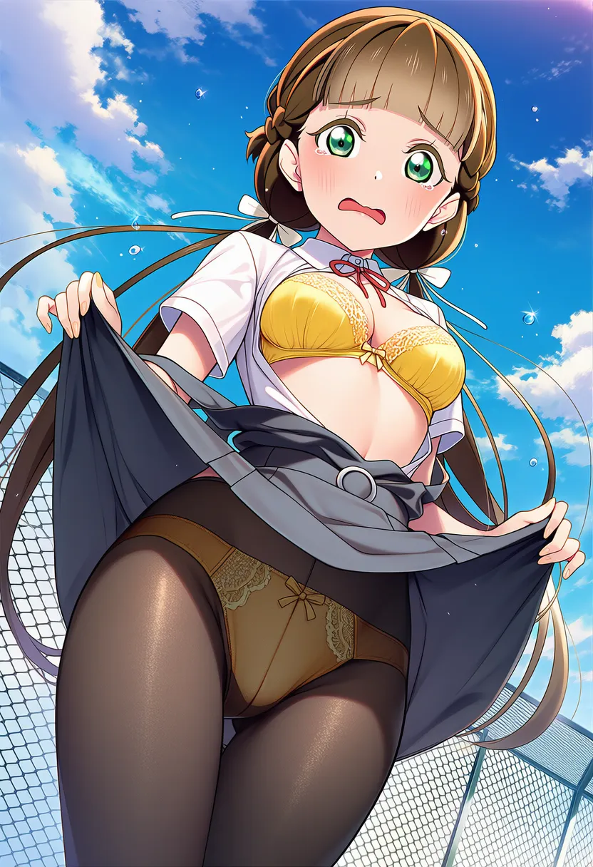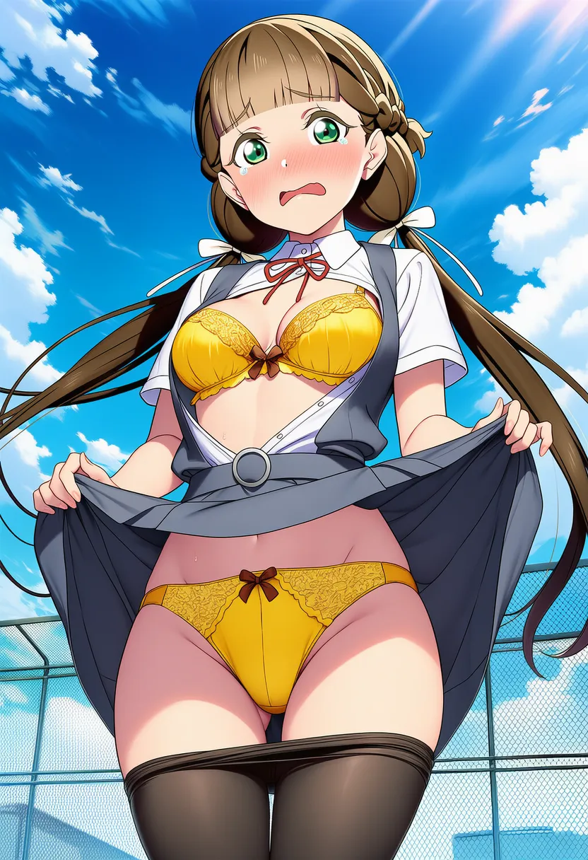 『ラブライブ!スーパースター!!』の桜小路きな子(さくらこうじ きなこ)の下着露出イラストです。pixivでは「下着チェック」シリーズとして投稿している内容です。クリック/タップで大きな画像を表示できます。