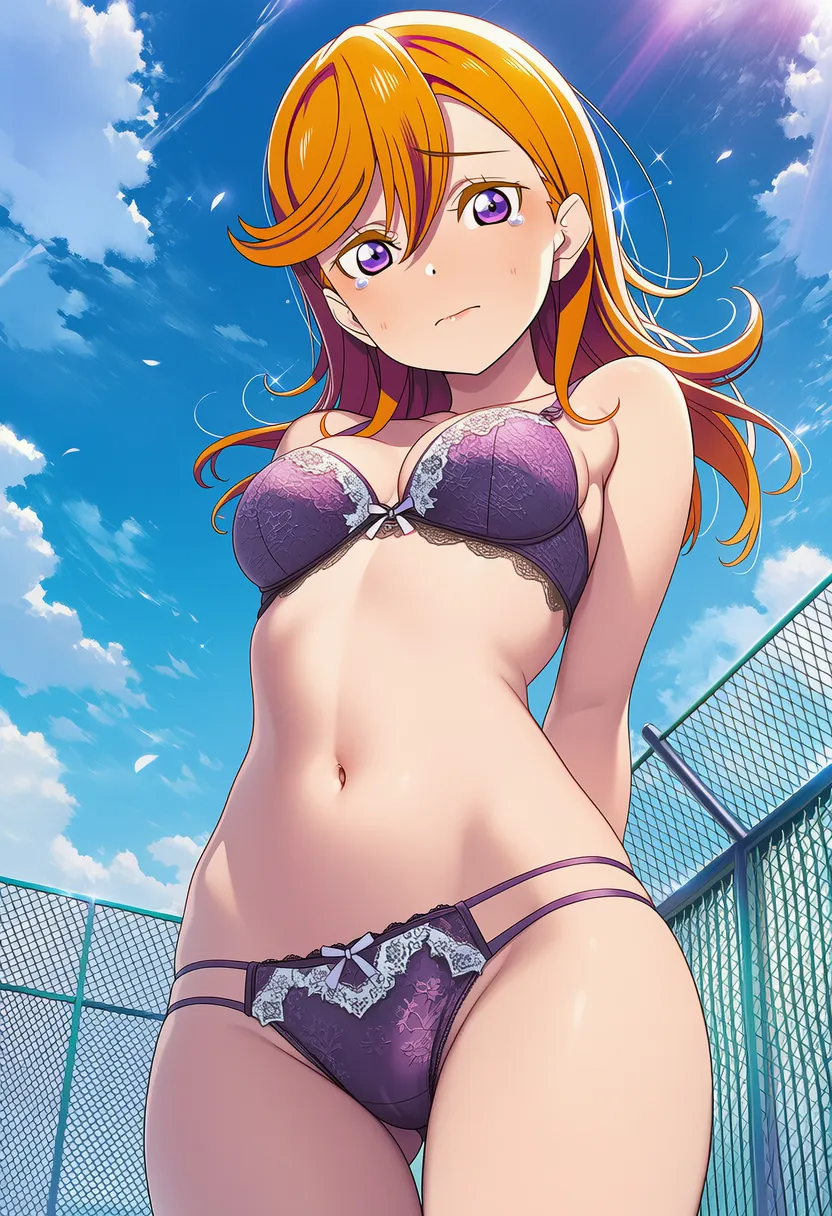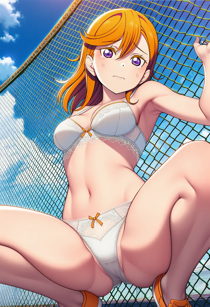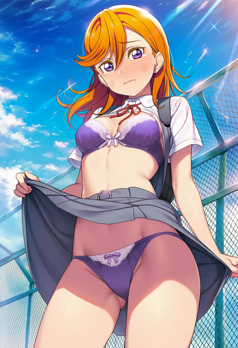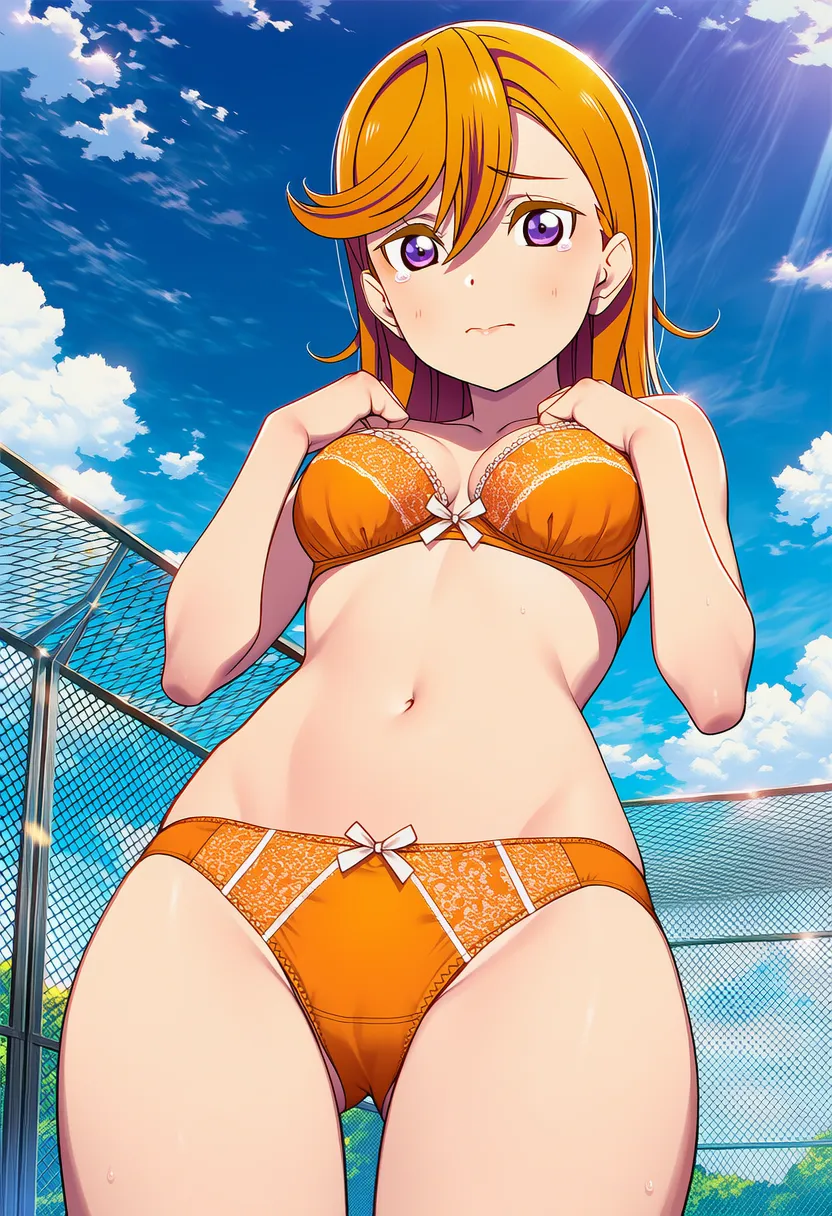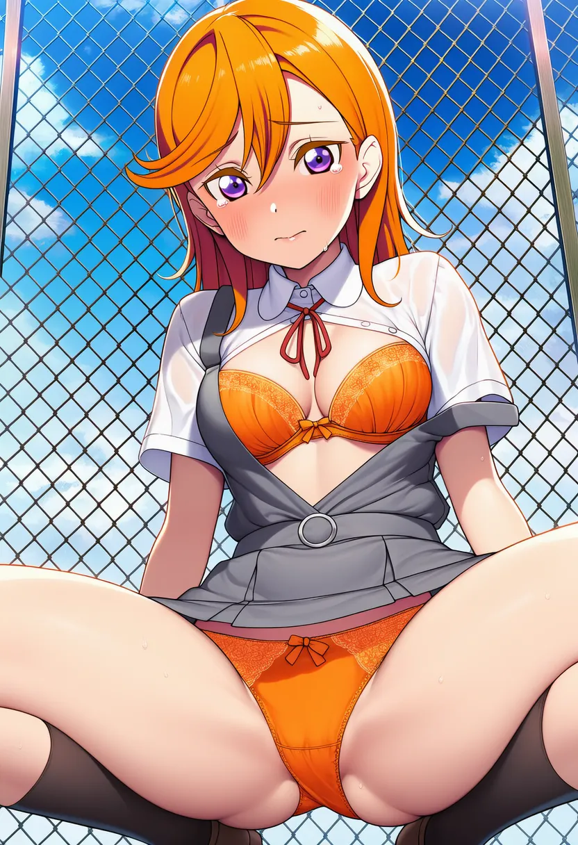 屋上で下着を露出させられる澁谷かのん。