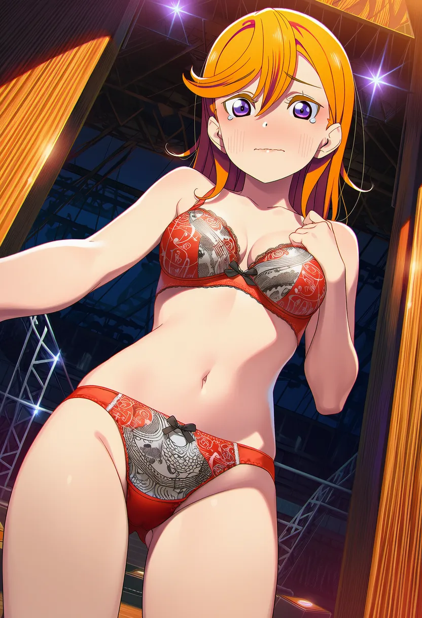 ステージで下着を露出させられる澁谷かのん。
