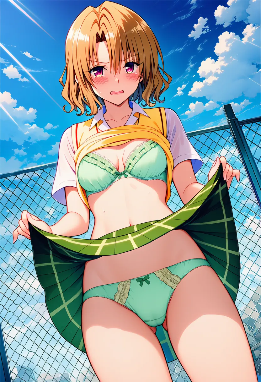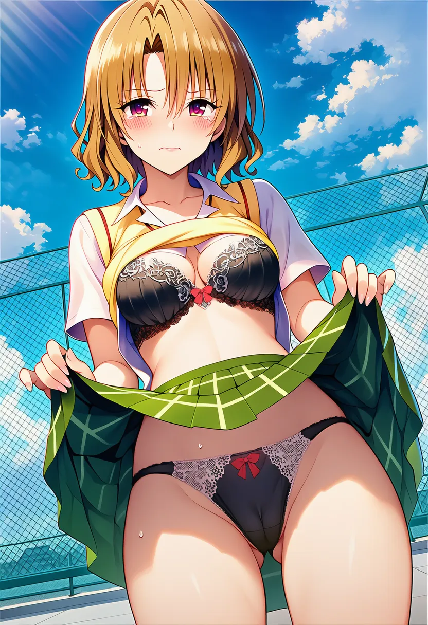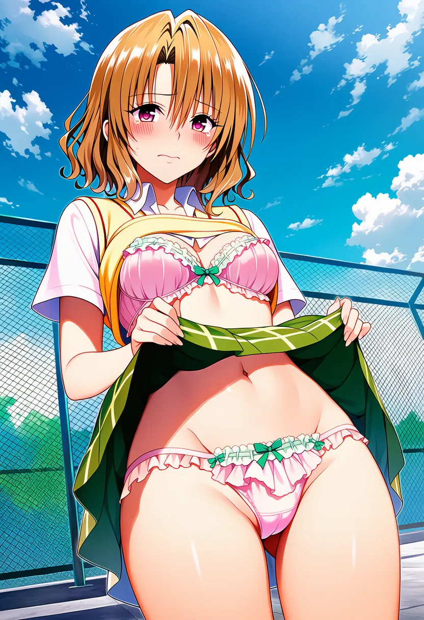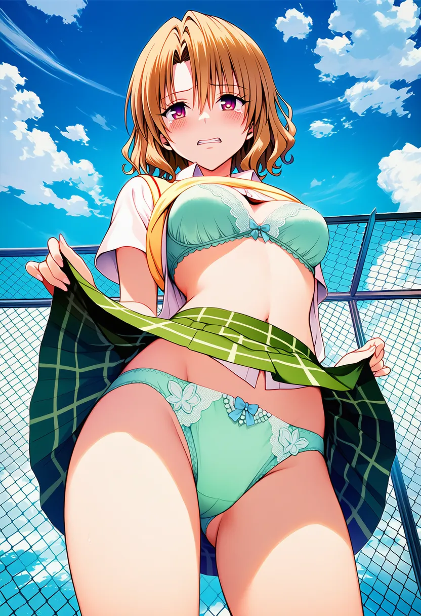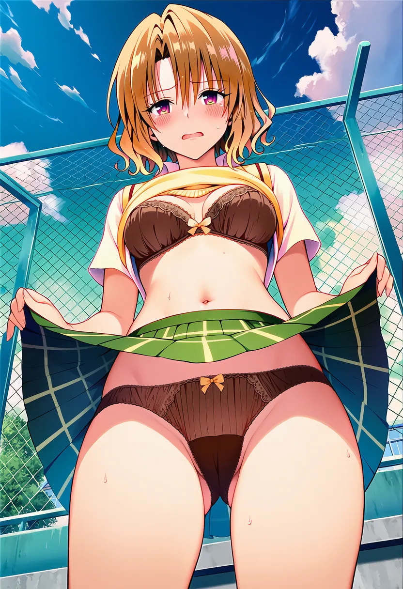 『ToLOVEる -とらぶる-』の籾岡里紗(もみおか りさ)の下着露出イラストです。pixivでは「下着チェック」シリーズとして投稿している内容です。クリック/タップで大きな画像を表示できます。