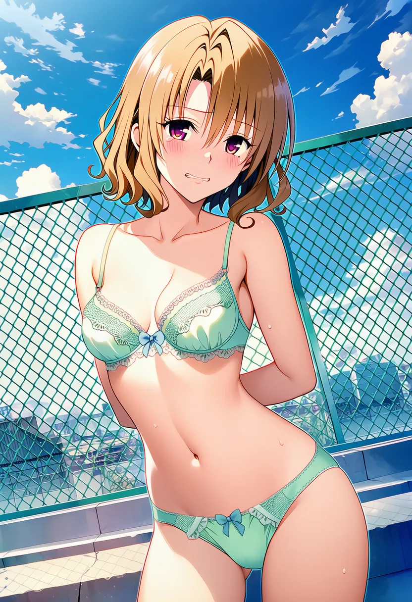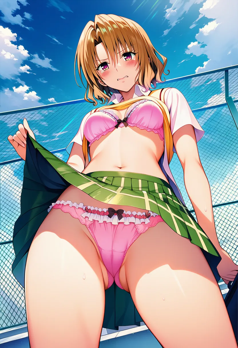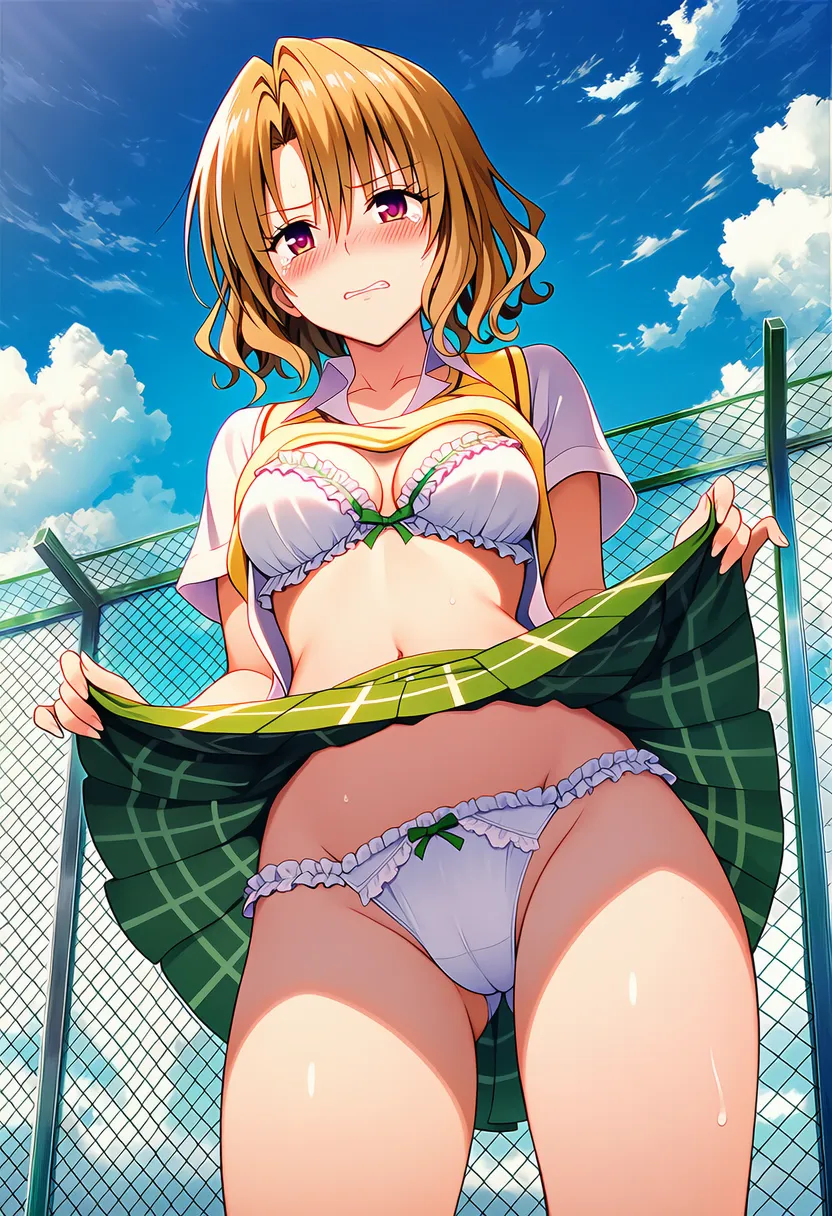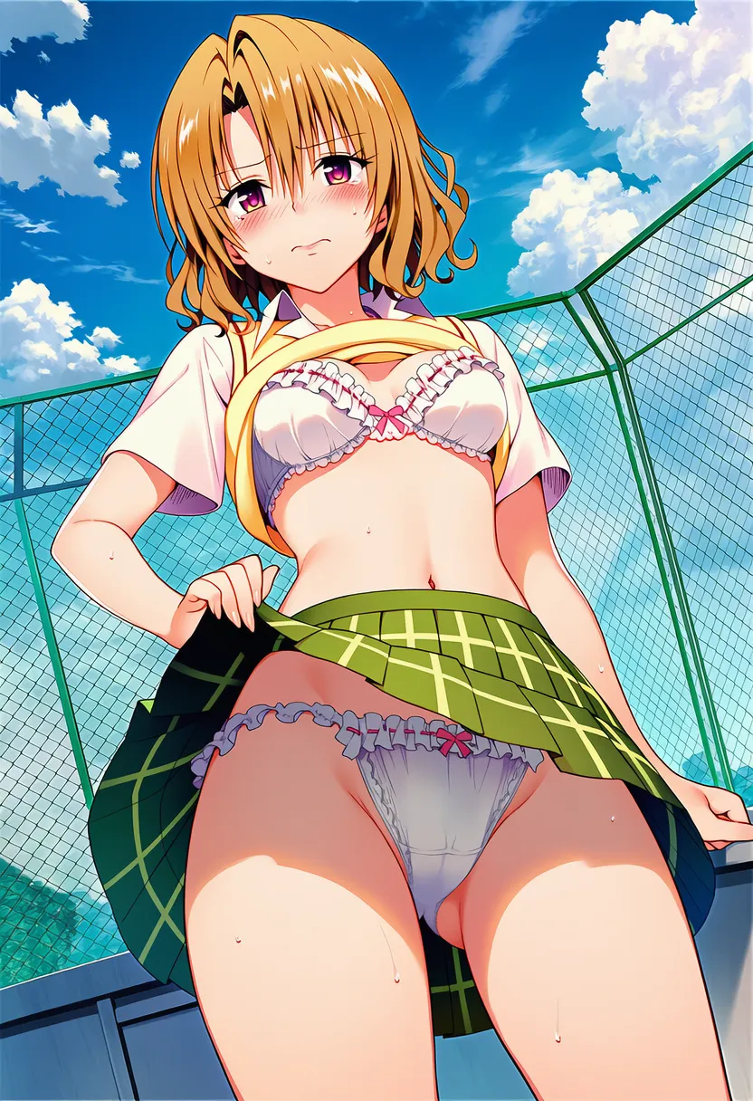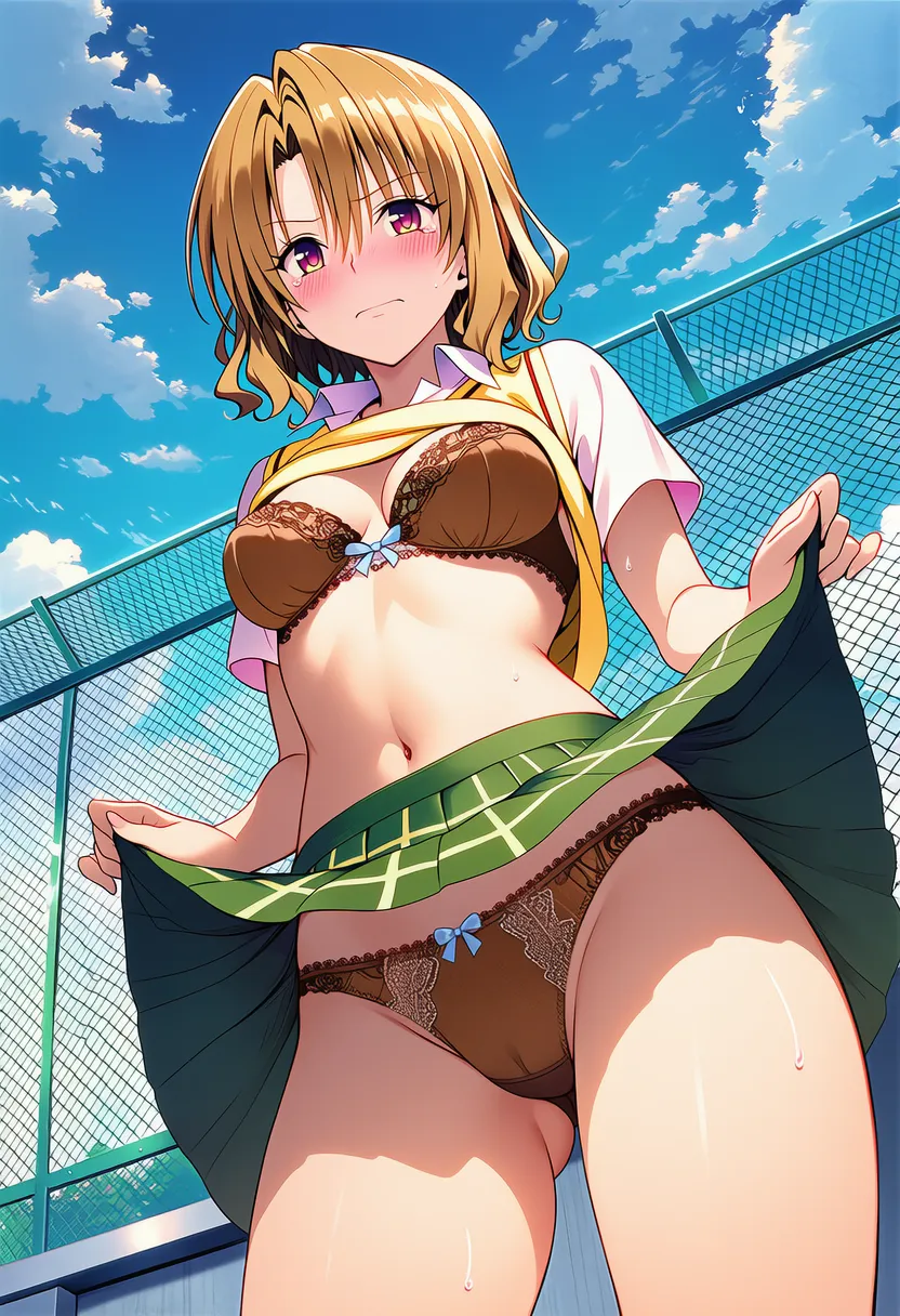 『ToLOVEる -とらぶる-』の籾岡里紗(もみおか りさ)の下着露出イラストです。pixivでは「下着チェック」シリーズとして投稿している内容です。クリック/タップで大きな画像を表示できます。