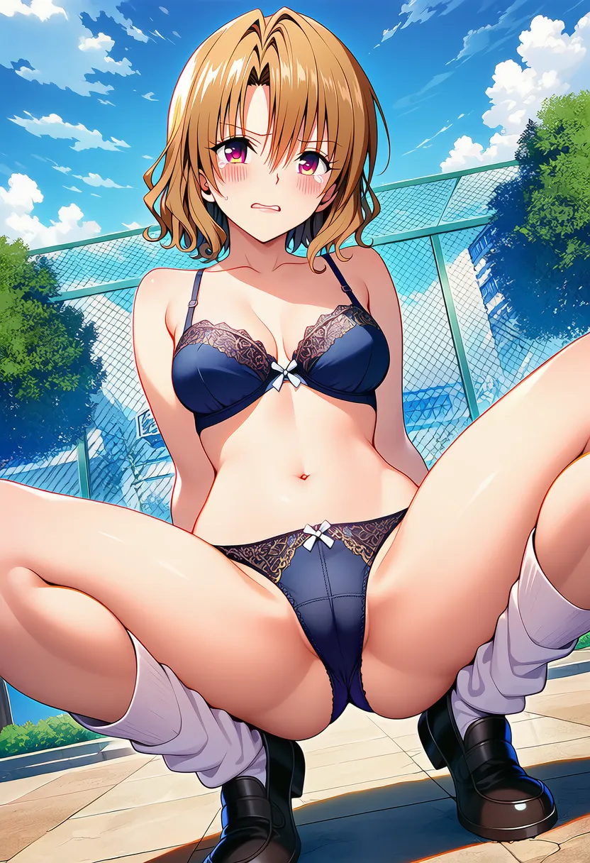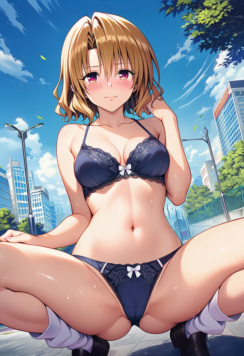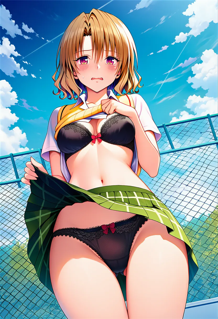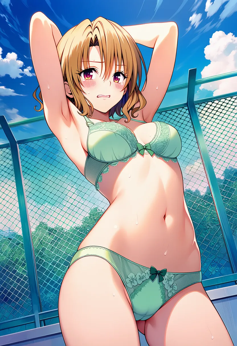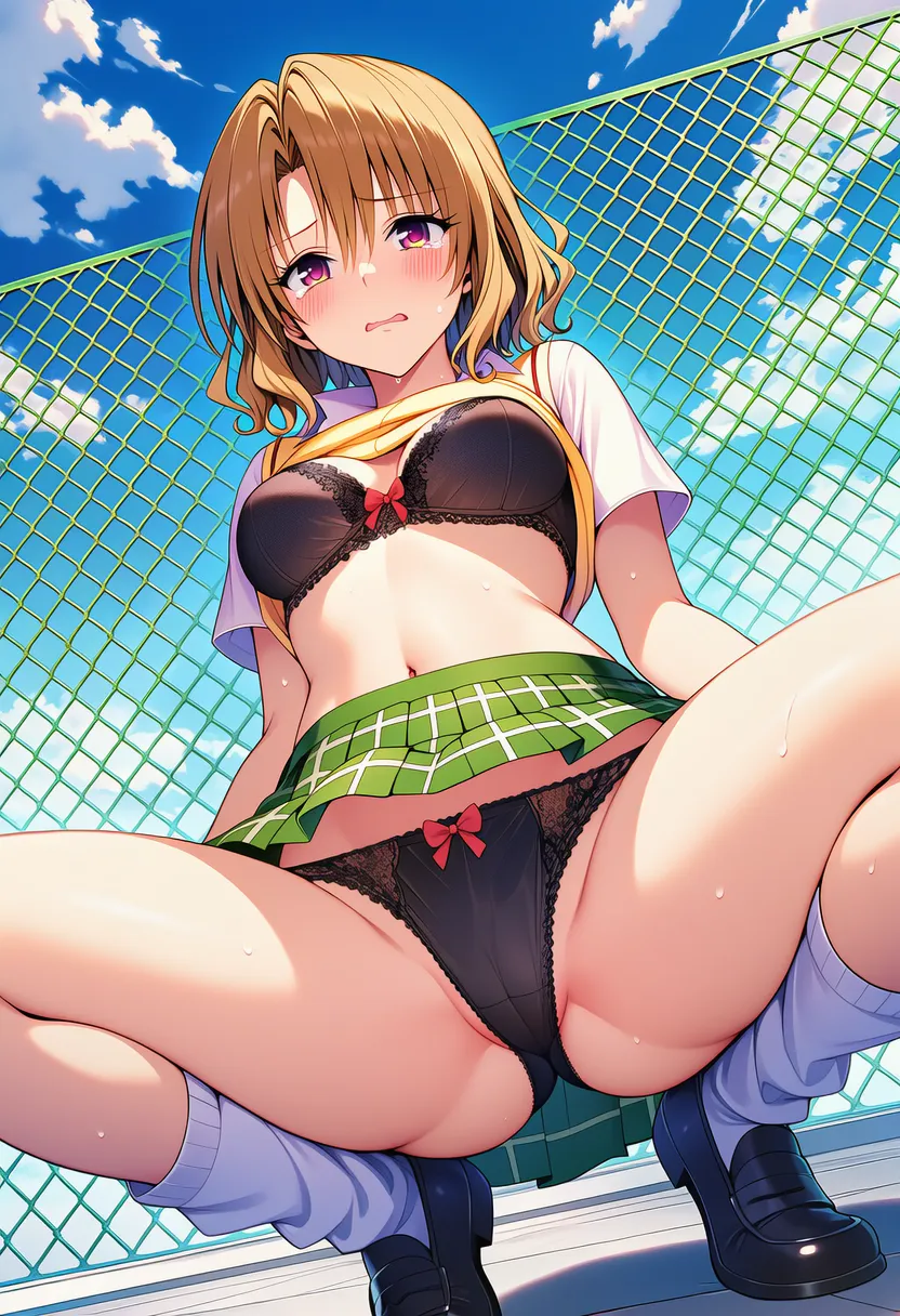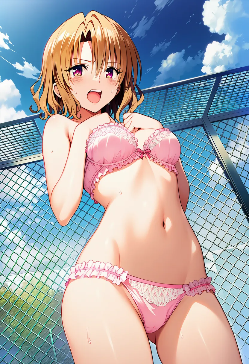 『ToLOVEる -とらぶる-』の籾岡里紗(もみおか りさ)の下着露出イラストです。pixivでは「下着チェック」シリーズとして投稿している内容です。クリック/タップで大きな画像を表示できます。
