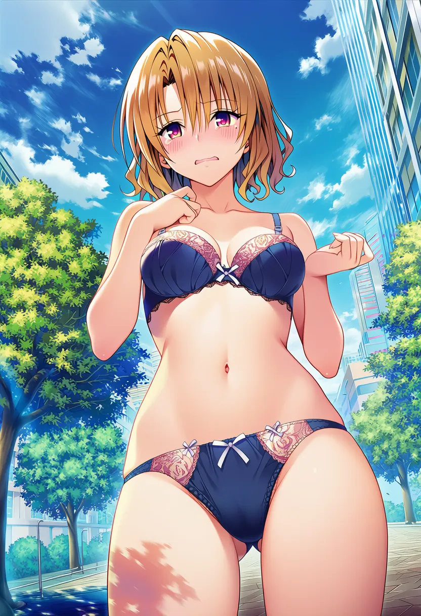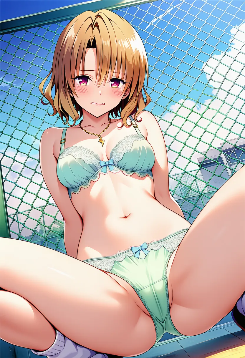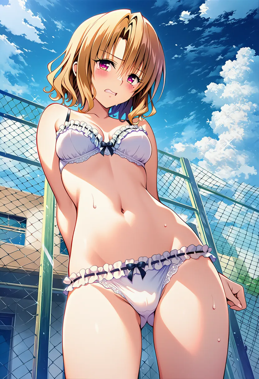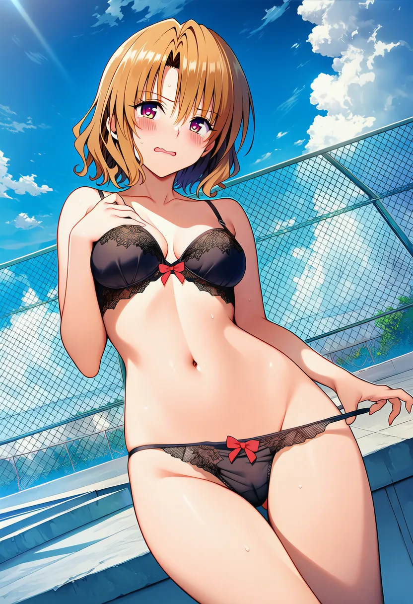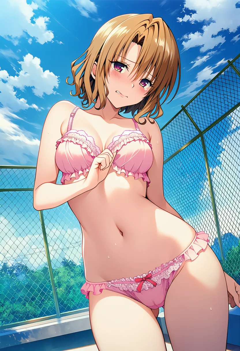 『ToLOVEる -とらぶる-』の籾岡里紗(もみおか りさ)の下着露出イラストです。pixivでは「下着チェック」シリーズとして投稿している内容です。クリック/タップで大きな画像を表示できます。