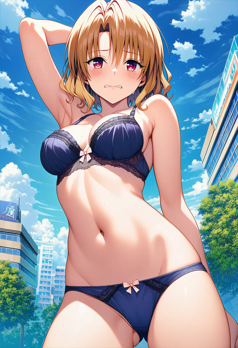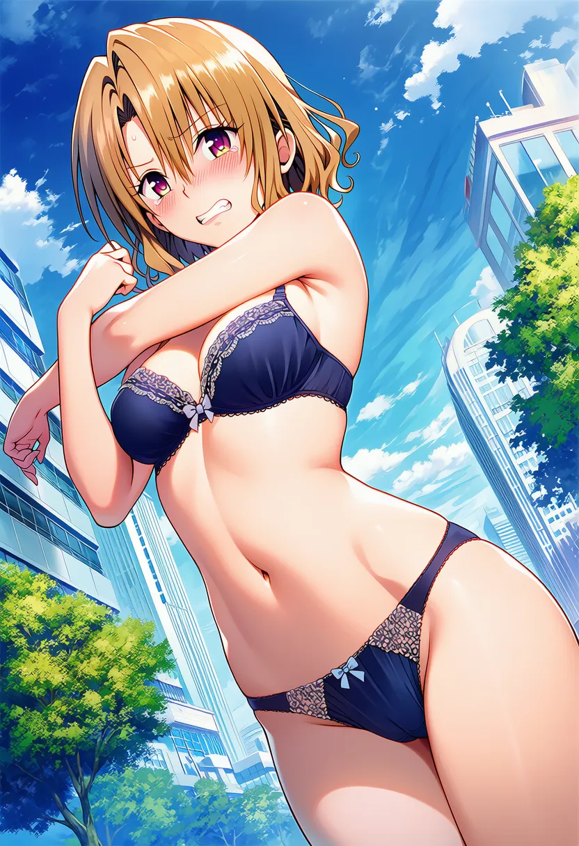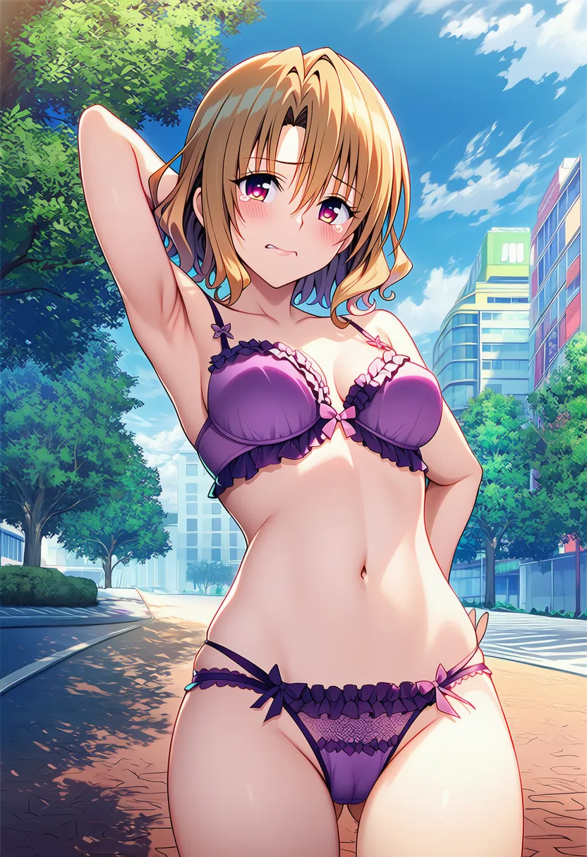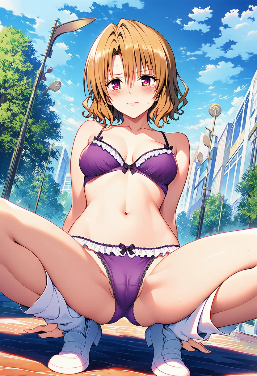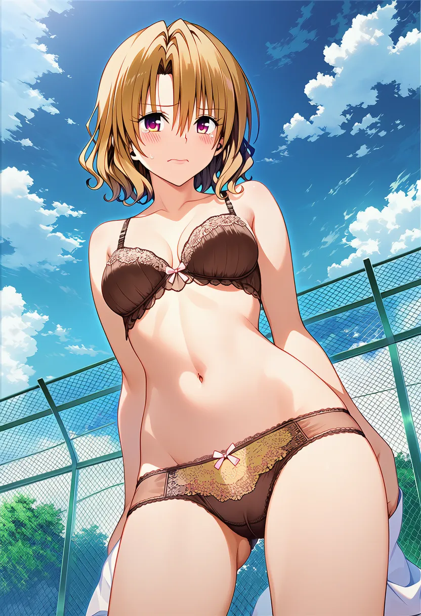 『ToLOVEる -とらぶる-』の籾岡里紗(もみおか りさ)の下着露出イラストです。pixivでは「下着チェック」シリーズとして投稿している内容です。クリック/タップで大きな画像を表示できます。